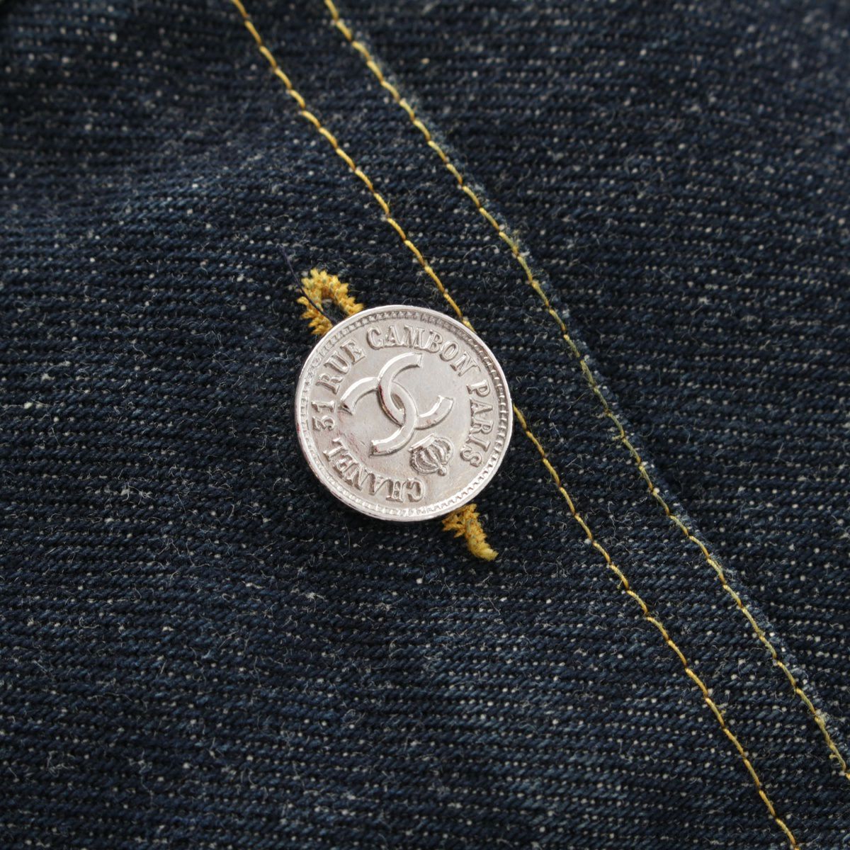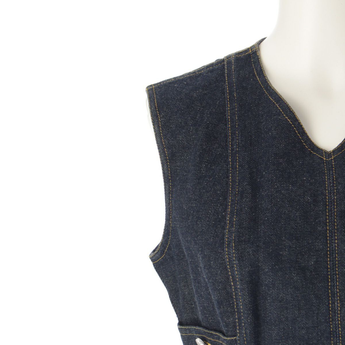 シャネル 96/97 コットン ココボタン ステッチデザイン デニム ワンピース P07014 インディゴ ネイビー 38