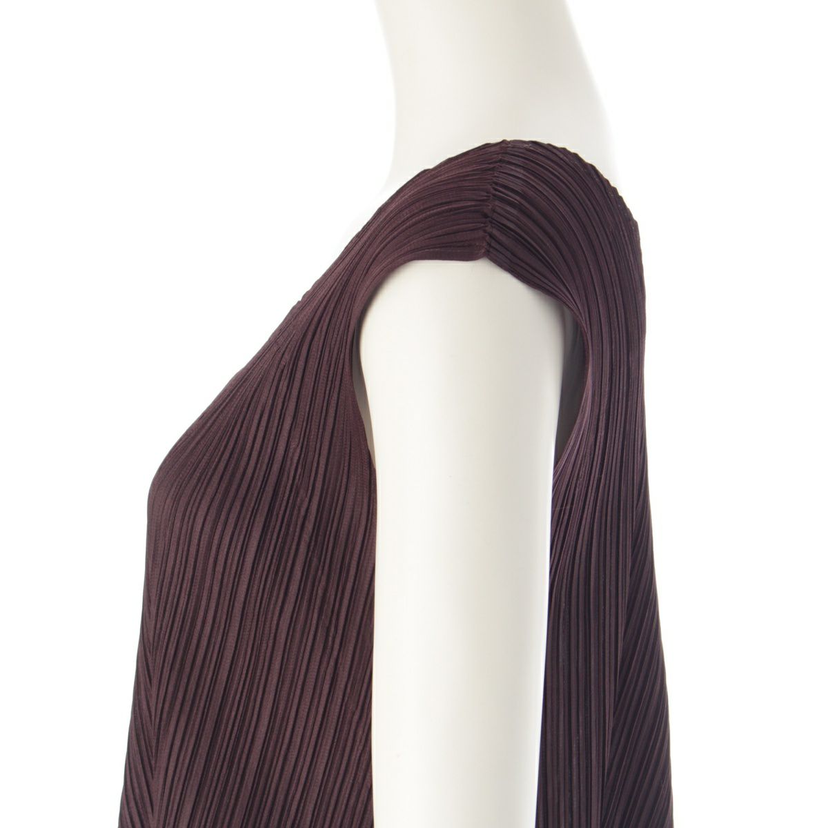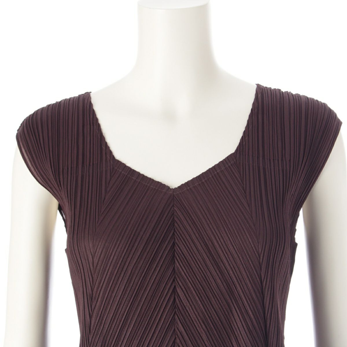 プリーツプリーズ イッセイミヤケ 異素材切替 チェック柄 ノースリーブ ワンピース ドレス PP03-JT565 ブラウン 3