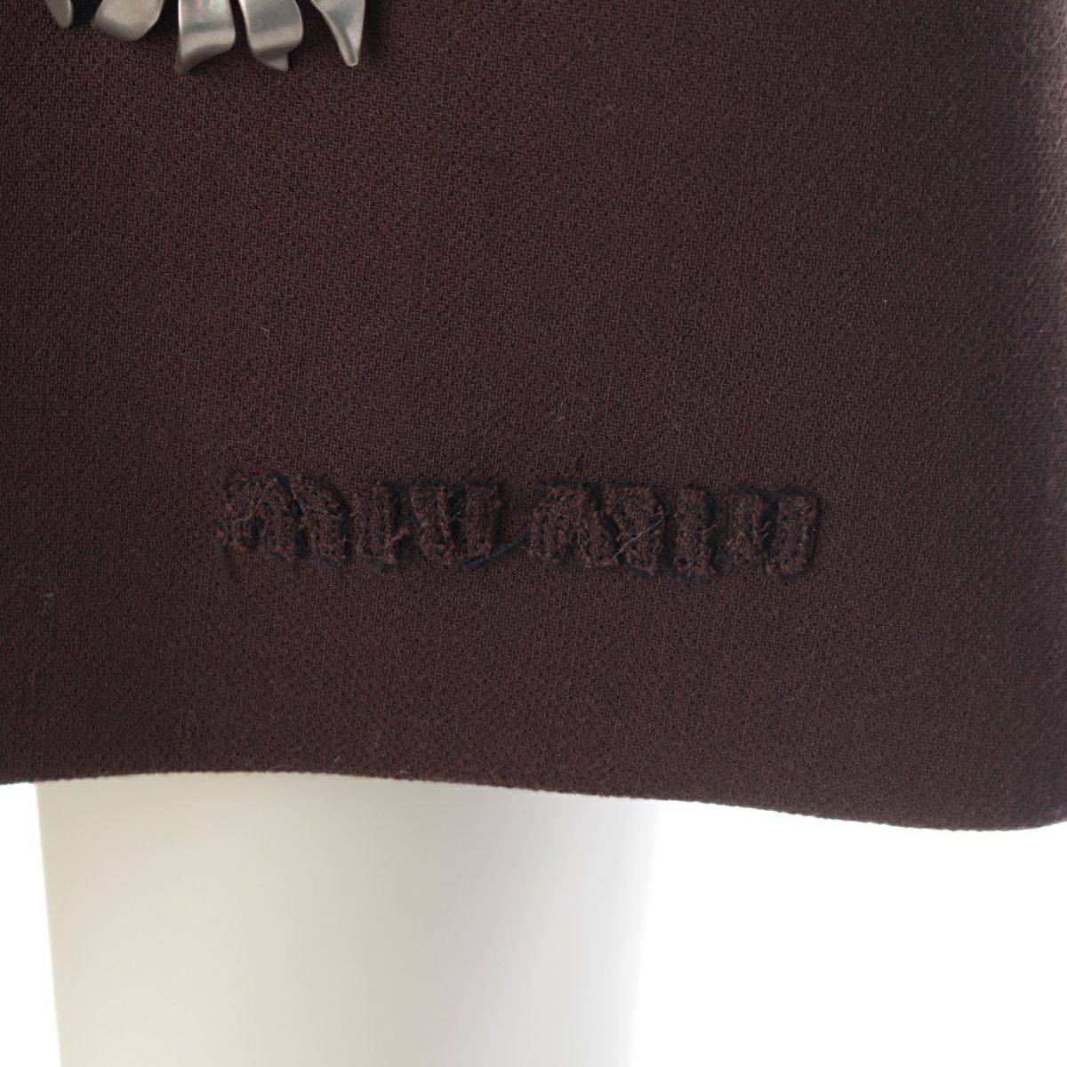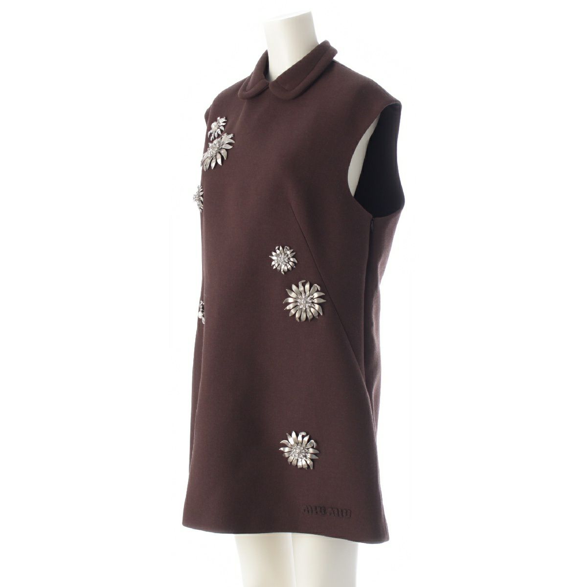 ミュウミュウ 24年 コレクションライン バージンウール ショート ナテドレス メタルフラワー ビジュー ミニドレス ワンピース MF5575 ブラウン 40