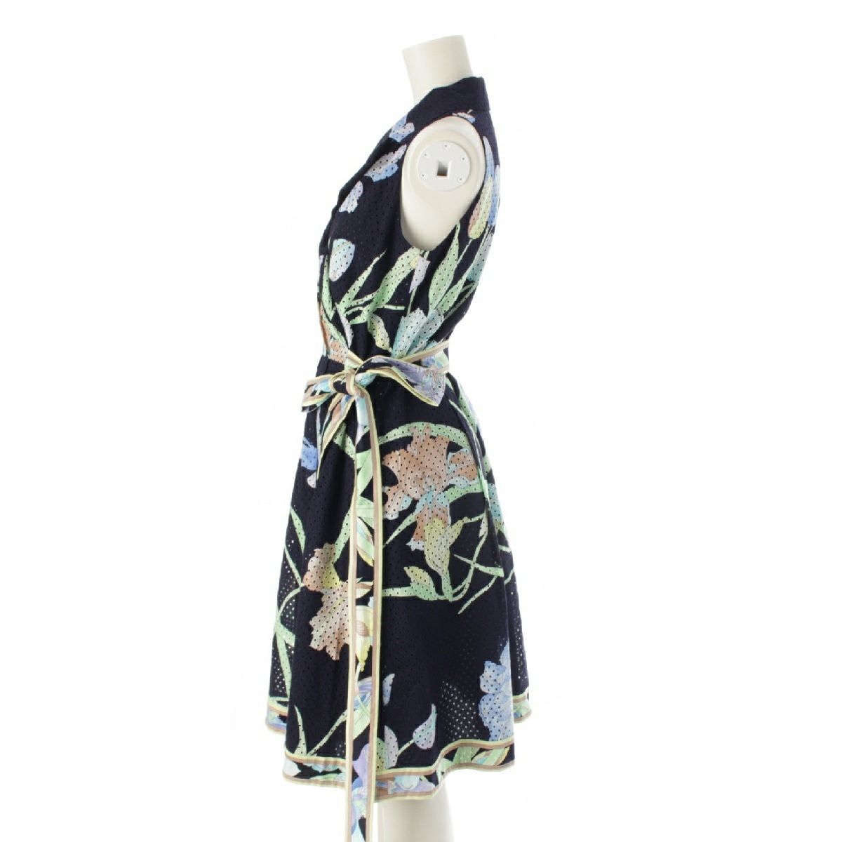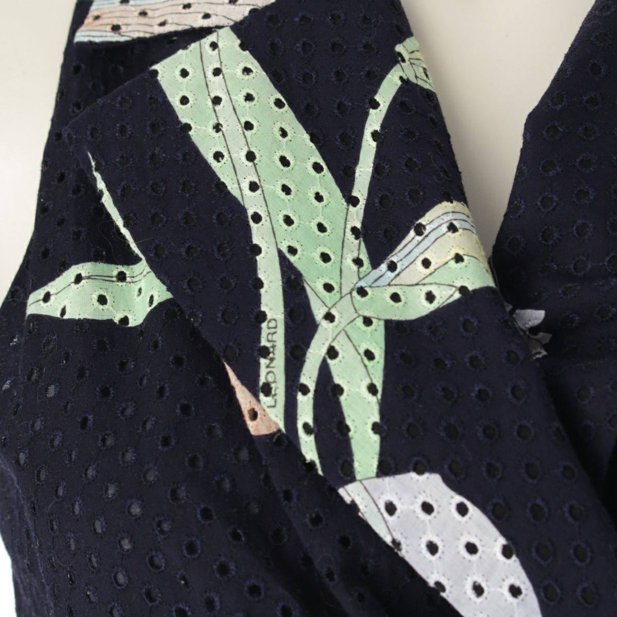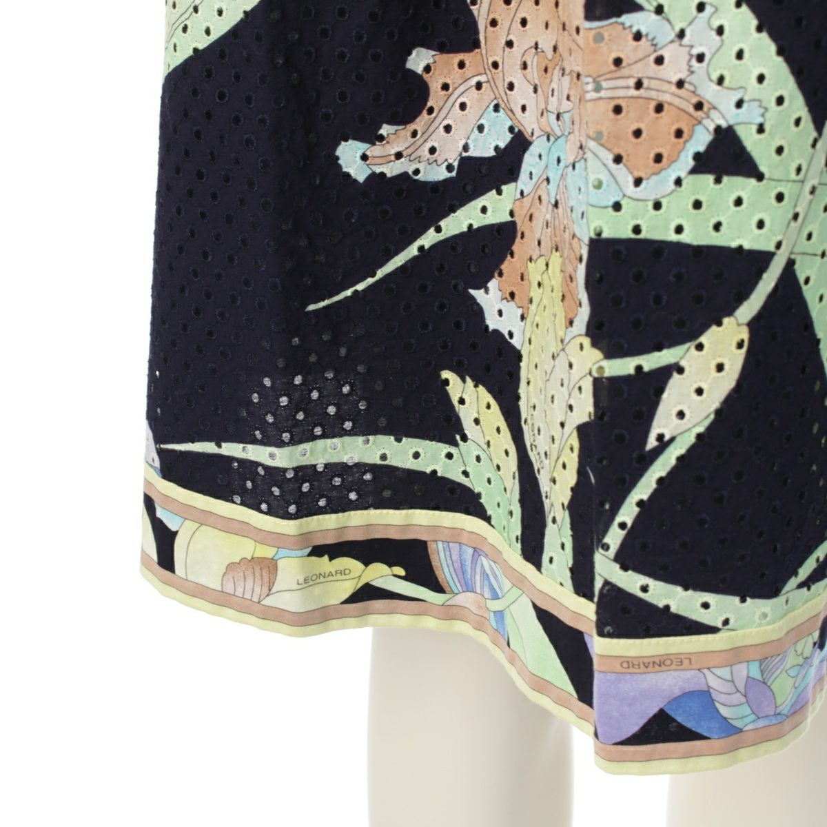 レオナール コットン 花柄 フラワー ベルト付き メッシュ ワンピース ドレス 390822 ネイビー 38