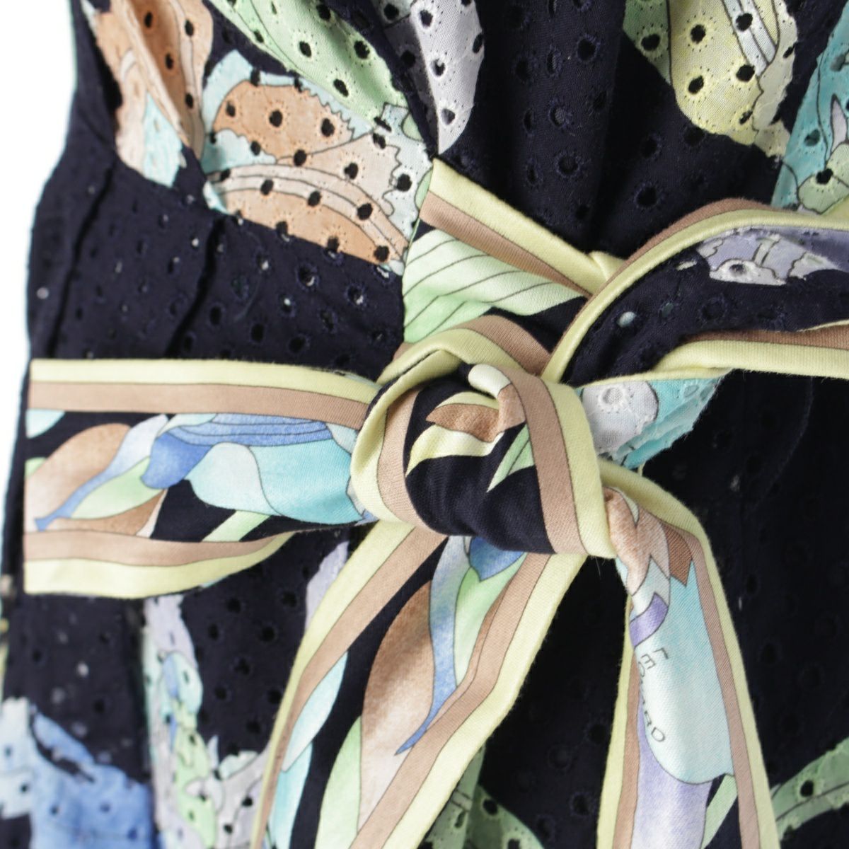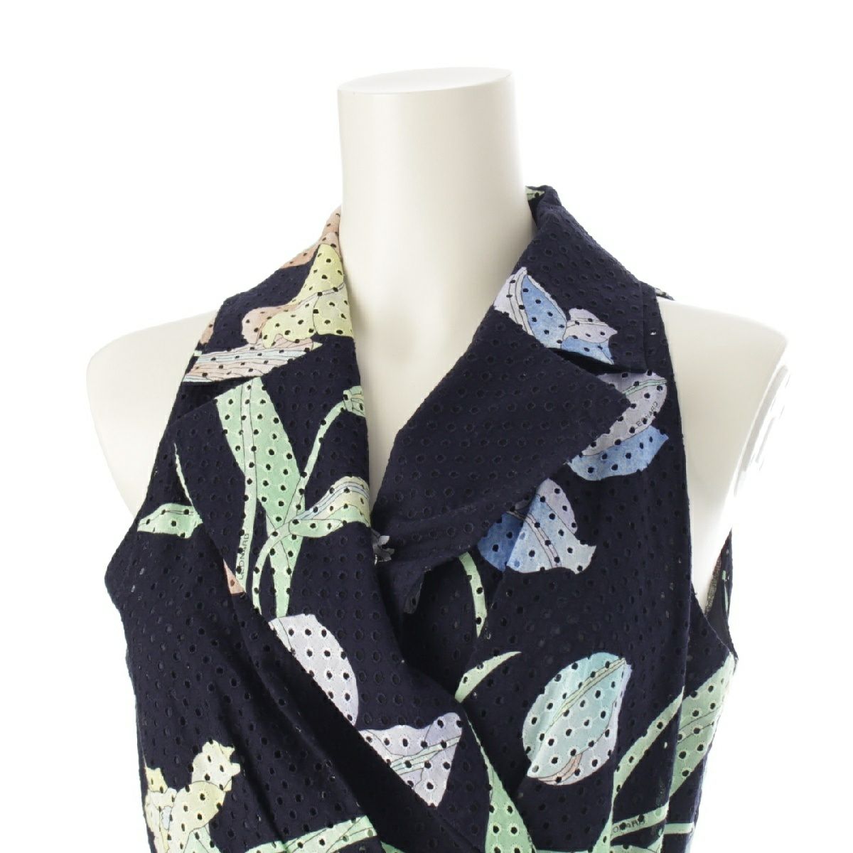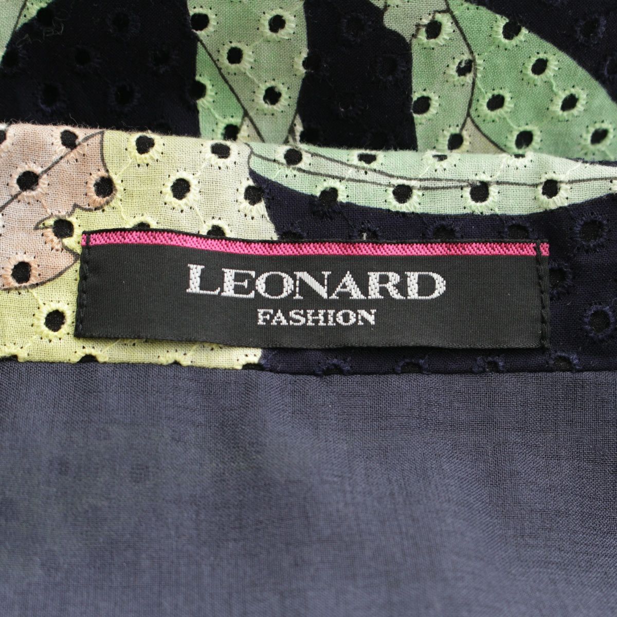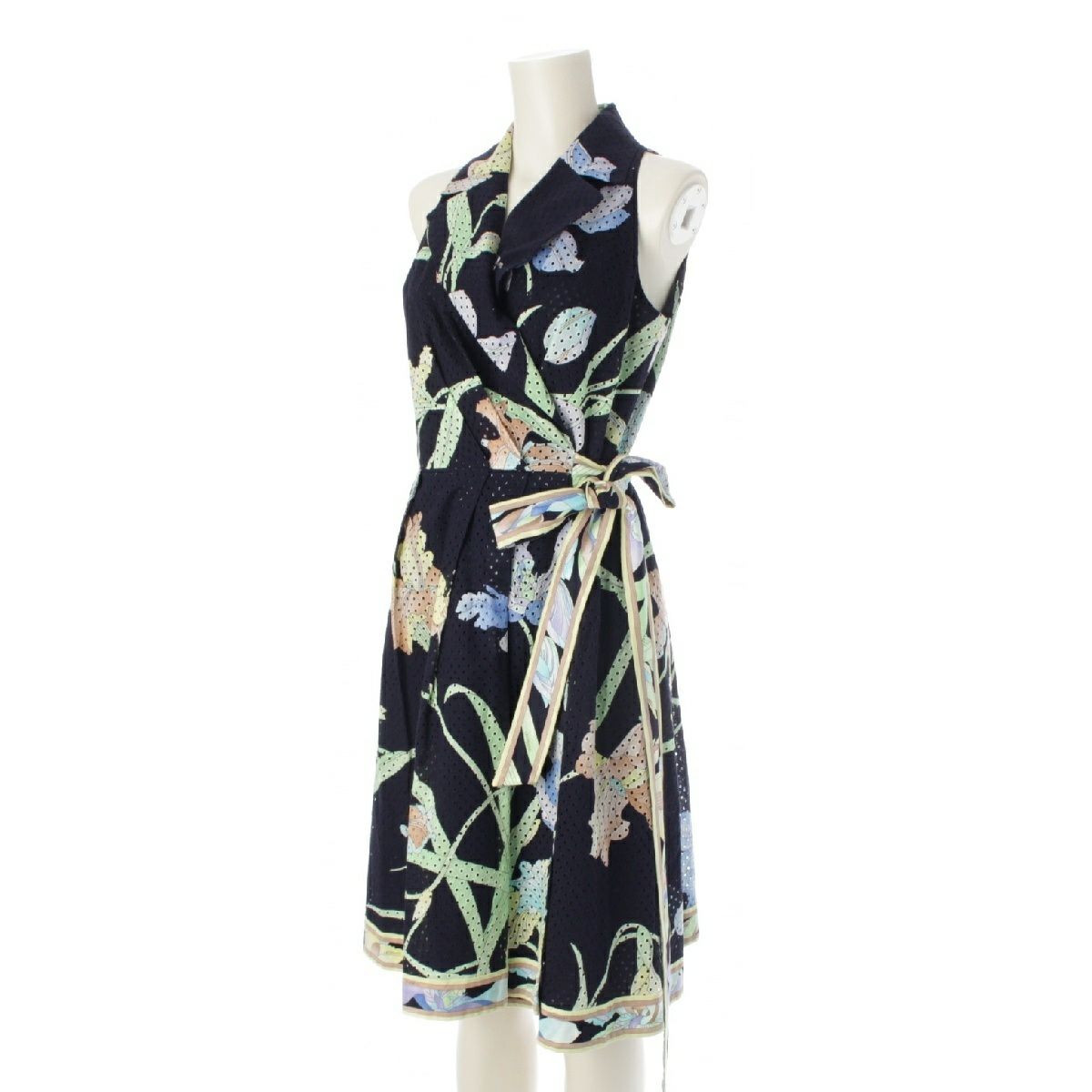 レオナール コットン 花柄 フラワー ベルト付き メッシュ ワンピース ドレス 390822 ネイビー 38
