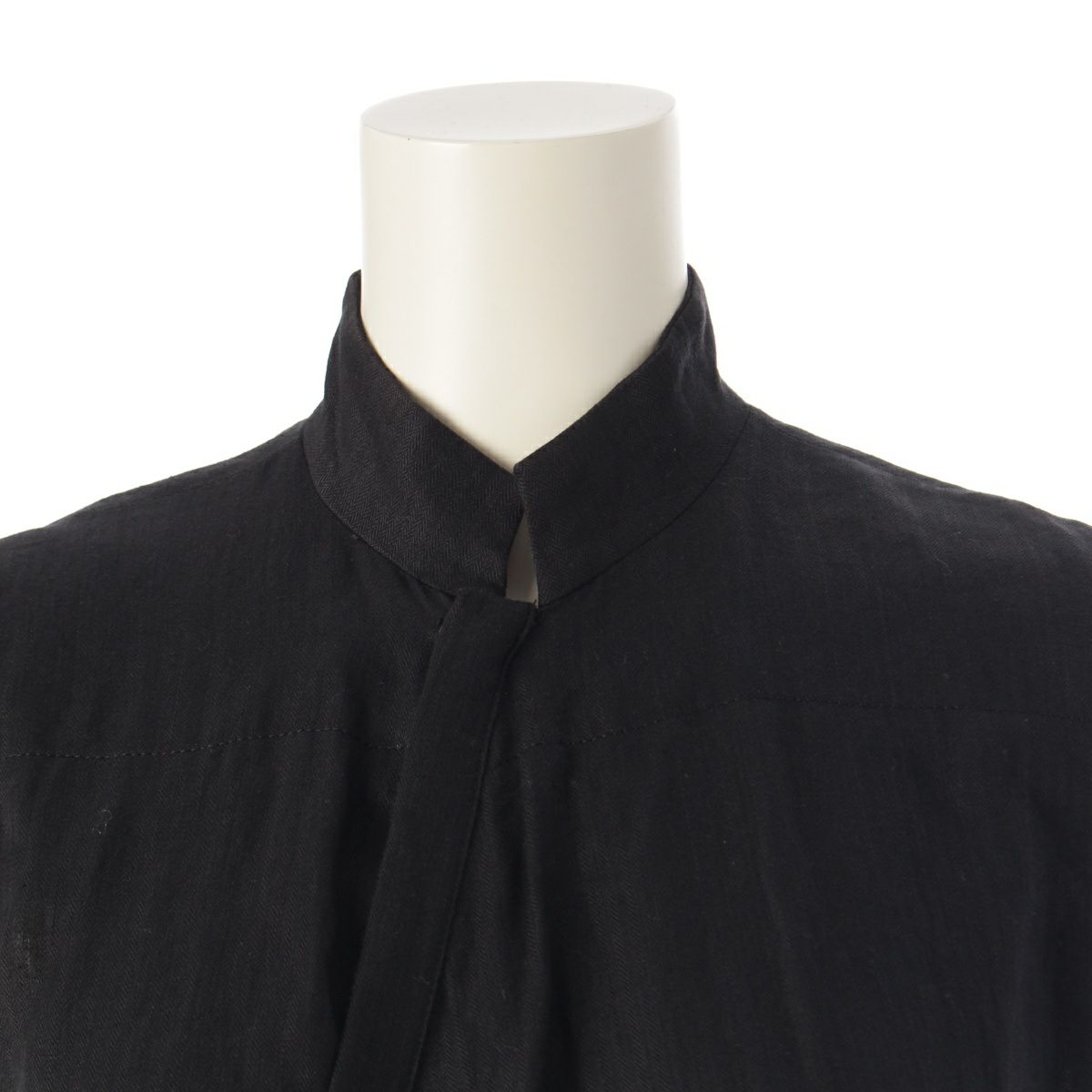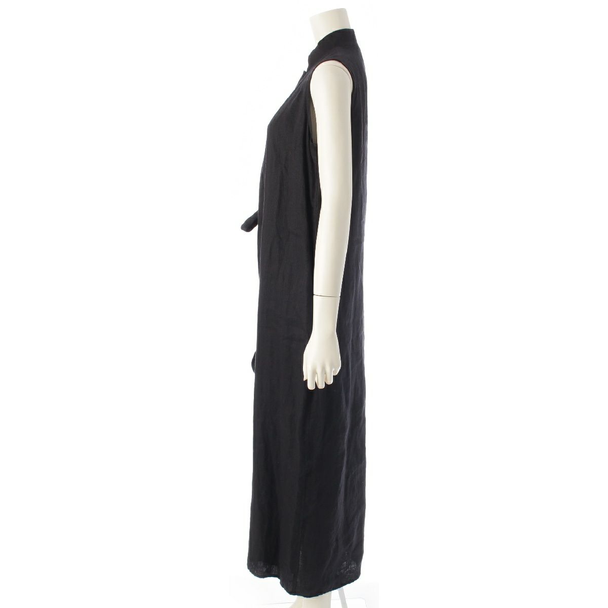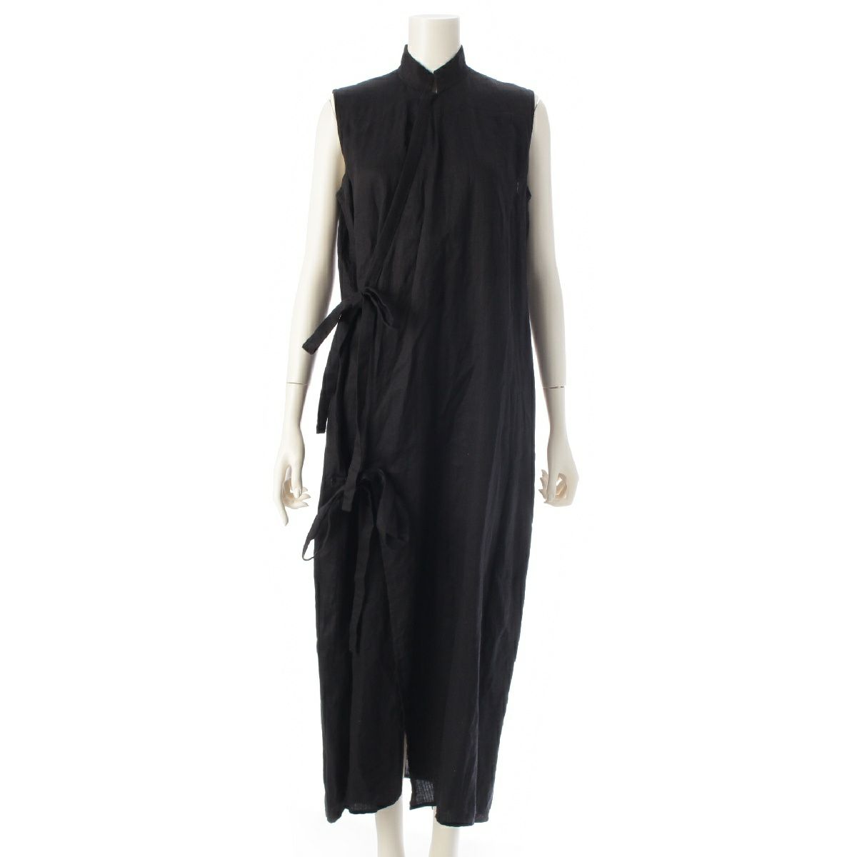 ワイズ ヨウジヤマモト Yohji Yamamoto リネン スタンドカラー ベルト ノースリーブ ワンピース ロングドレス YZ-D07-307 ブラック
