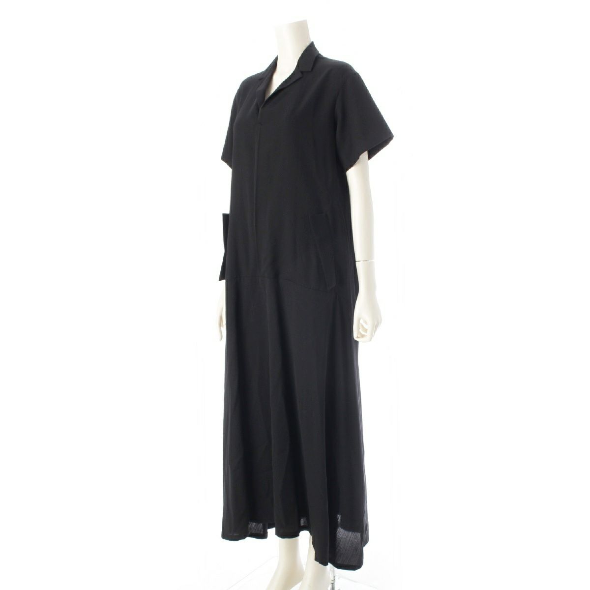 ワイズ ヨウジヤマモト ウール オープンカラー 半袖 ワンピース YF-D04-100 ブラック