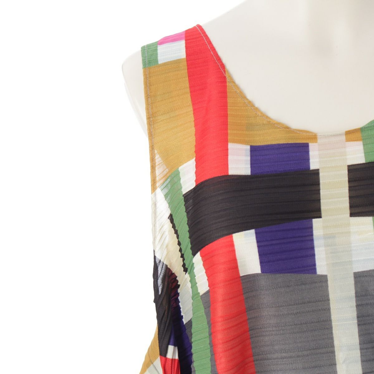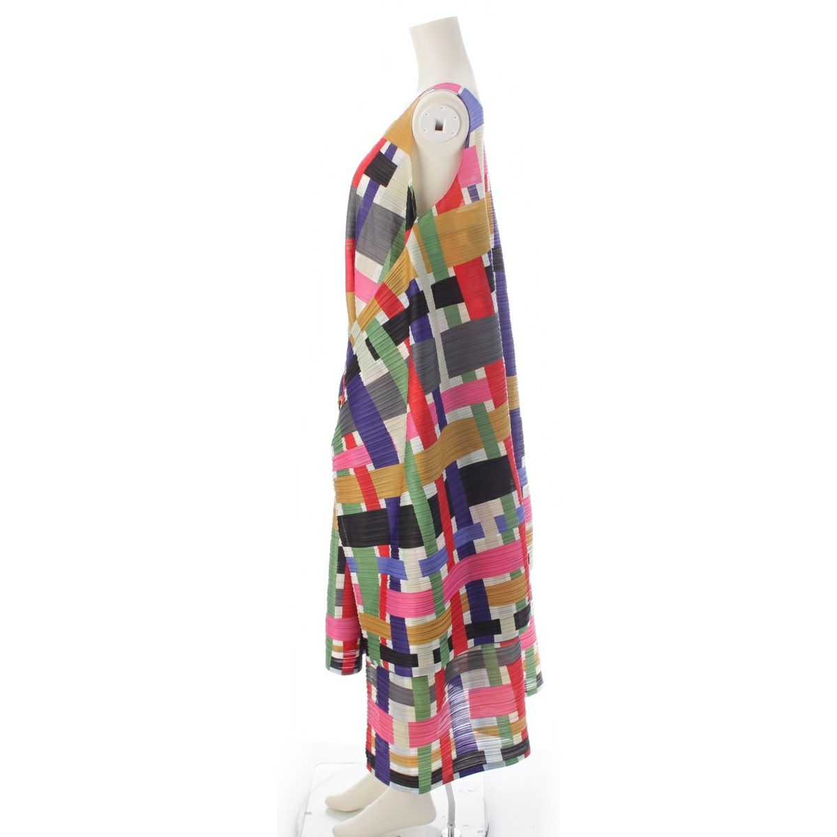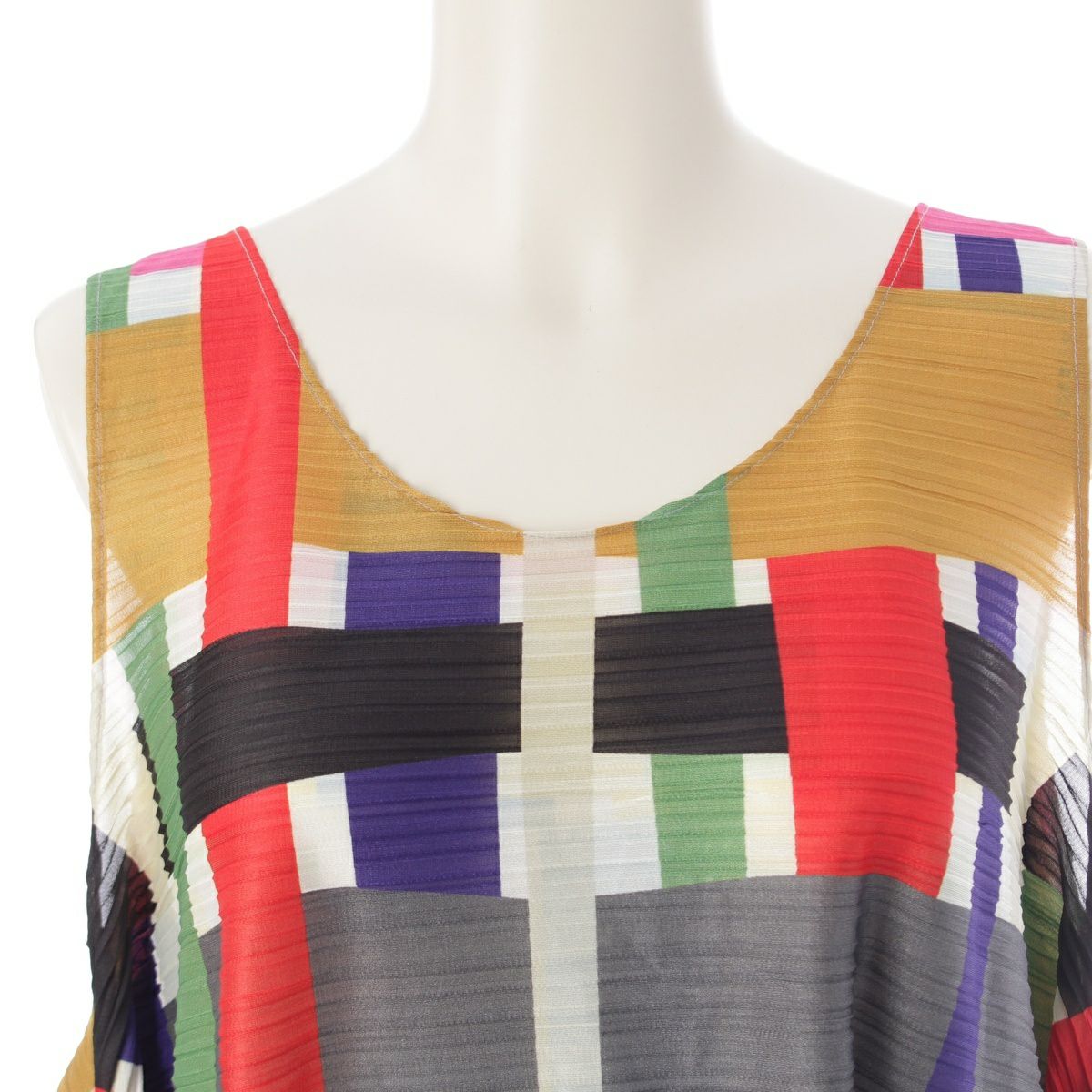 プリーツプリーズ イッセイミヤケ 19年 ボックスチェック バウンスプリーツ レイヤード ワンピース トップス ボトムス スカート PP93-JH922 レインボー マルチカラー 3