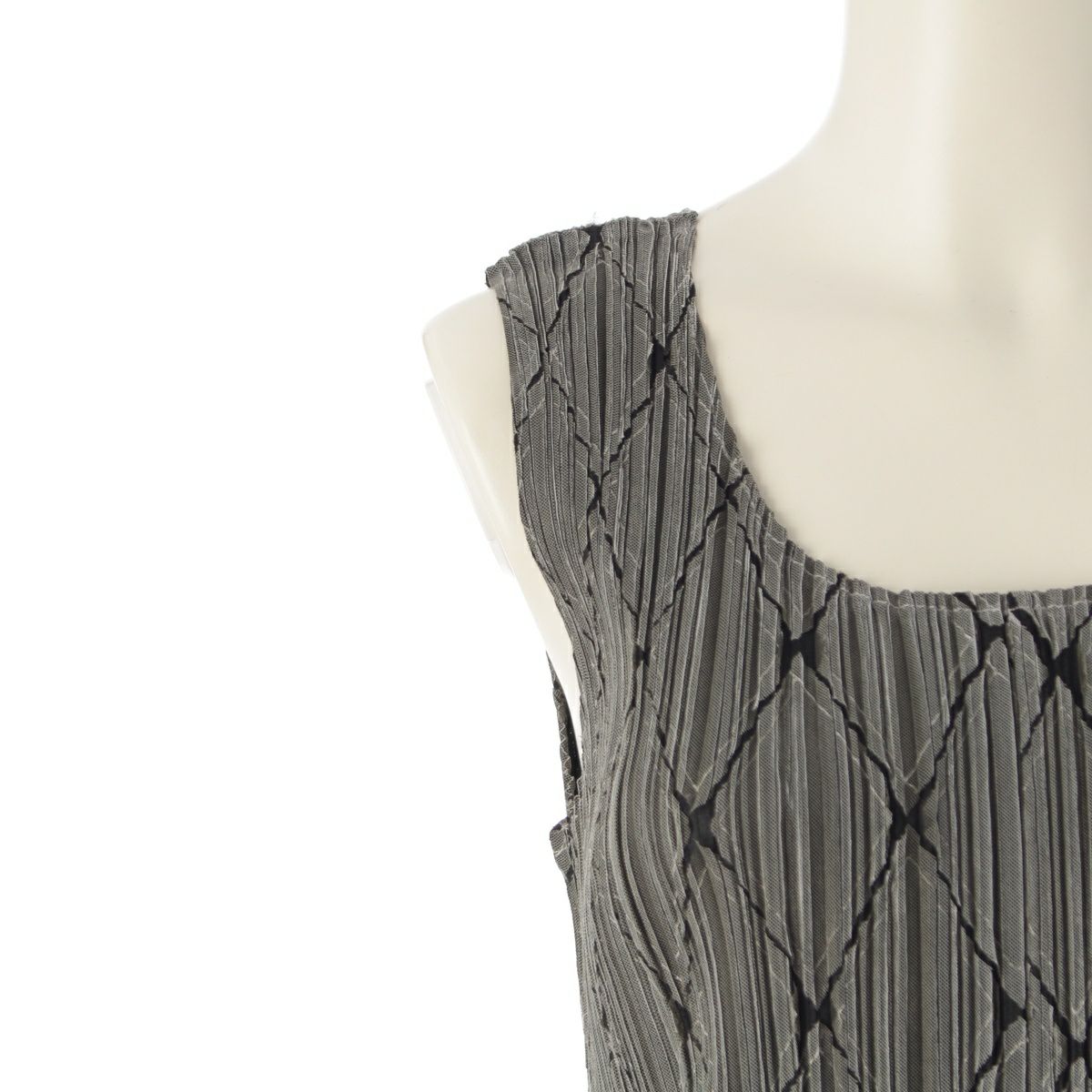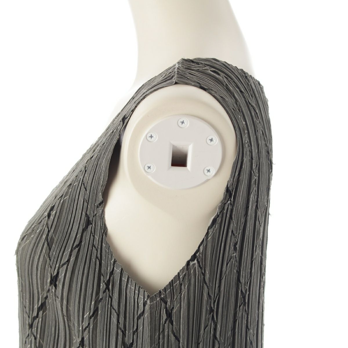 プリーツプリーズ イッセイミヤケ カッティング 有刺鉄線 金網 パンツ ノースリーブ ワンピースセットアップ グレー 4