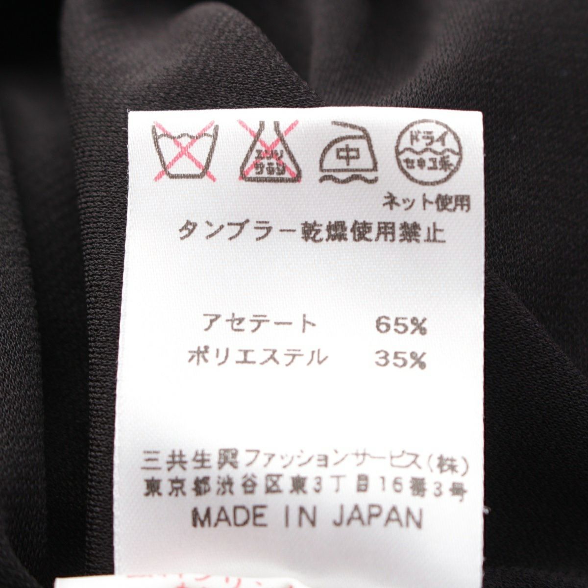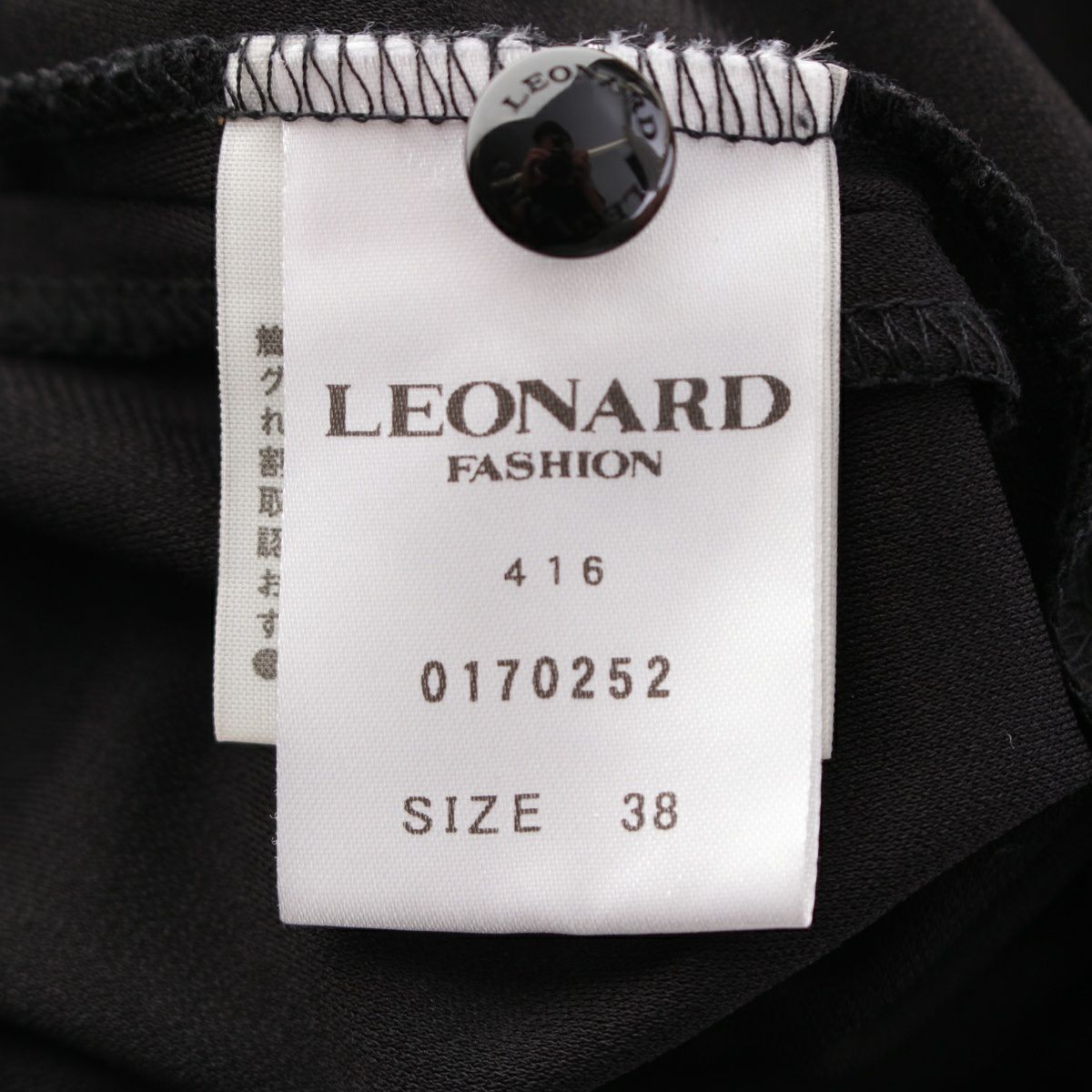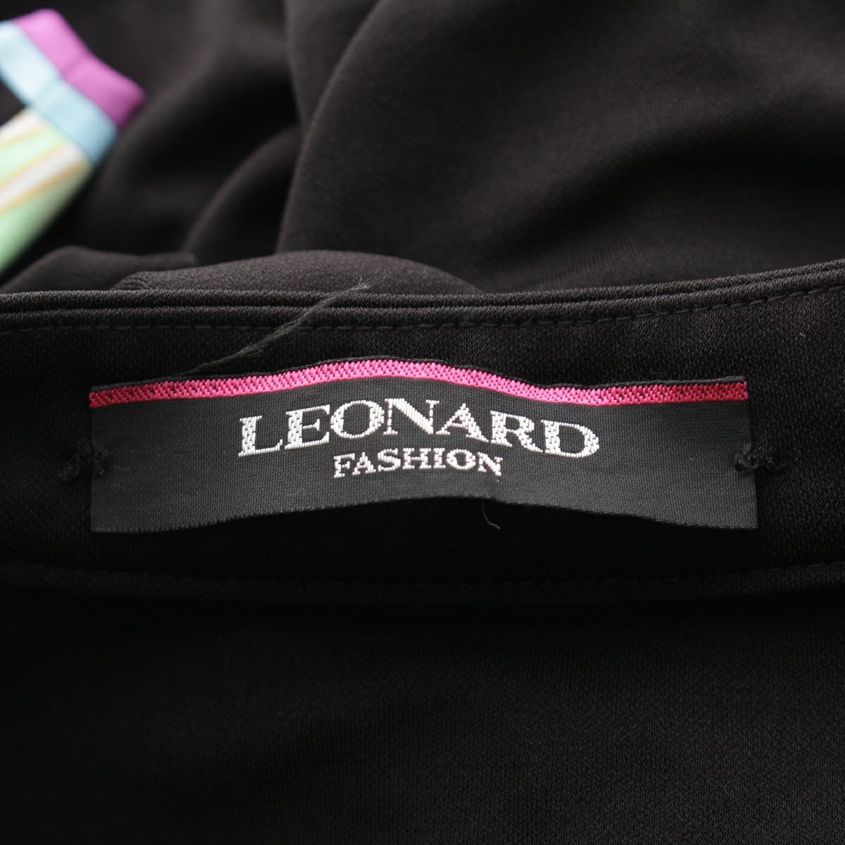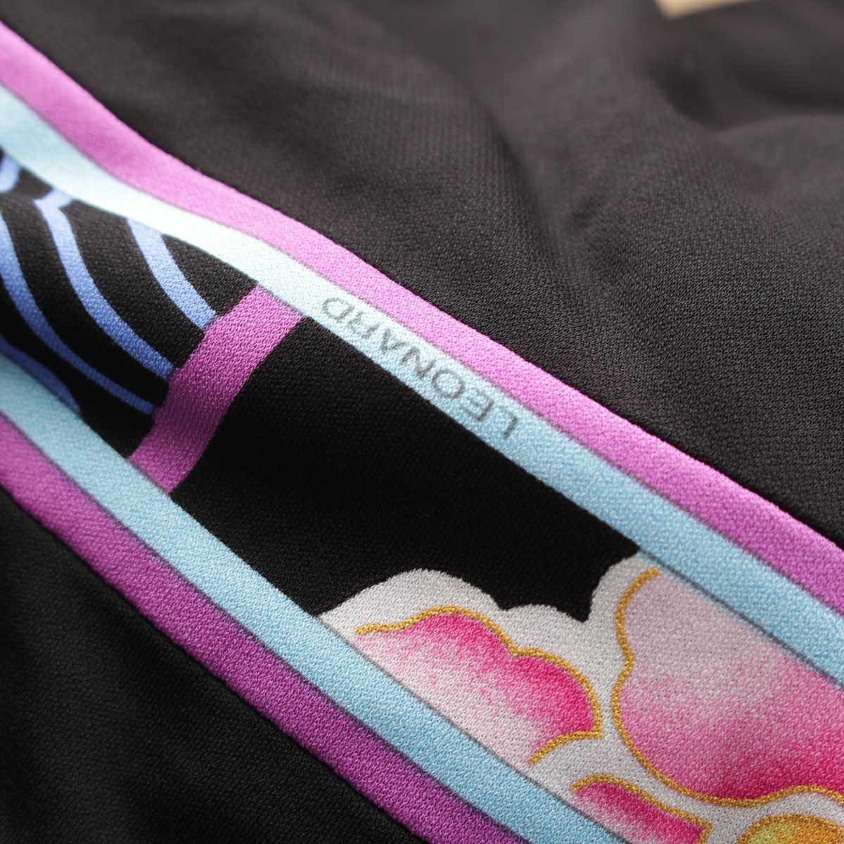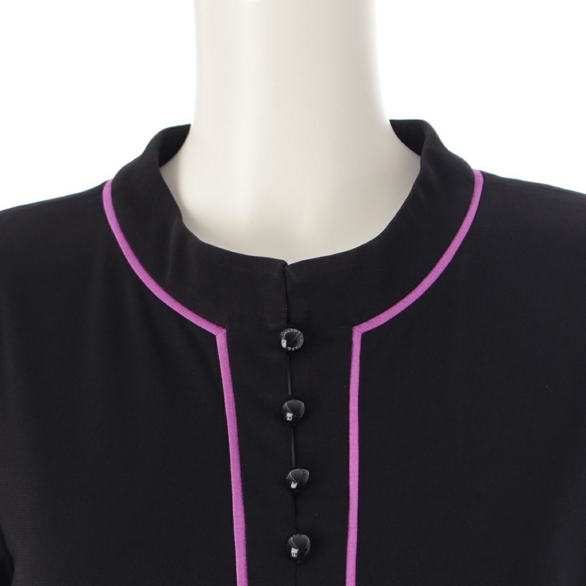 レオナール カンカン素材 ボタン ラウンドネック 五分丈 チュニック ワンピース ブラック×パープル系 38