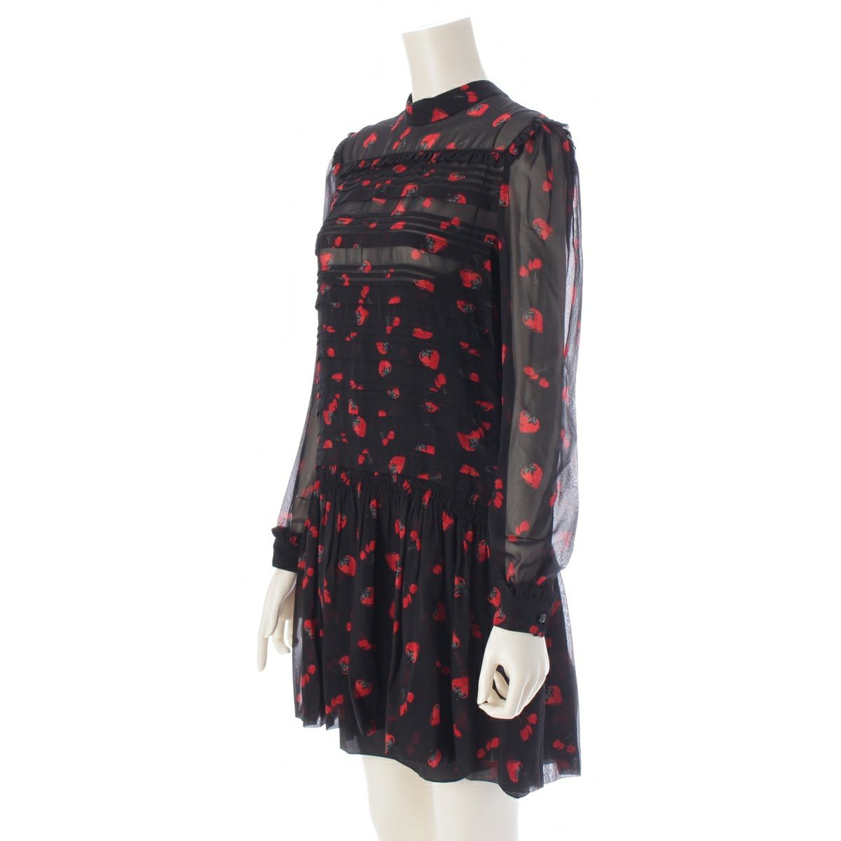 ミュウミュウ 17年 シルク ストロベリー チェリー レイヤード ワンピース MF2772 ブラック 40