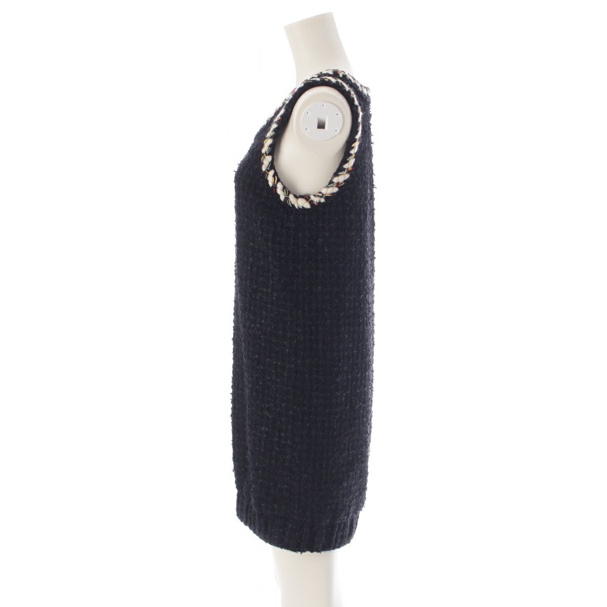 シャネル 22‐23年 メティエダール ツイード ノースリーブ ワンピース ドレス P75267 ブラック×イエロー 34