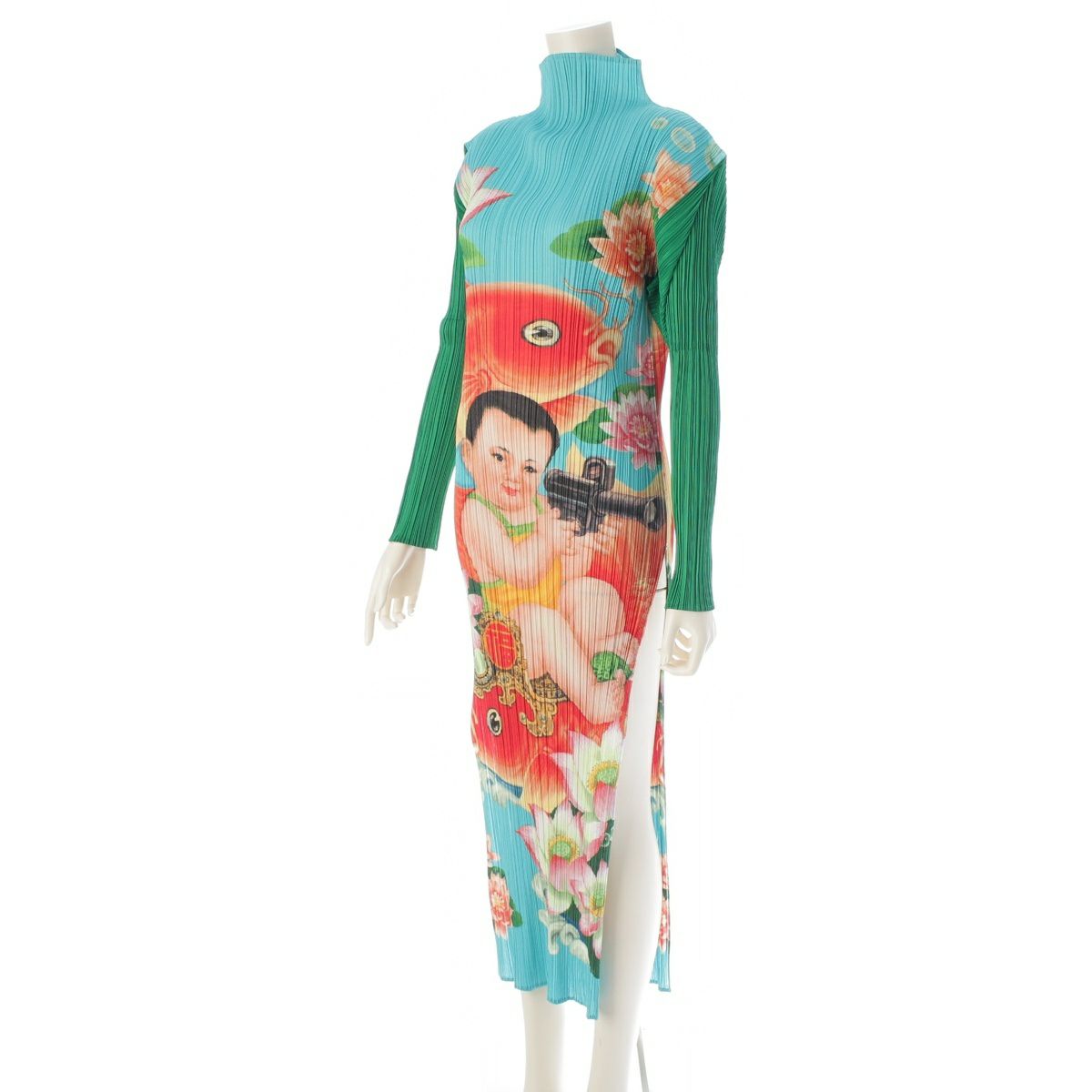 プリーツプリーズ イッセイミヤケ 1998 S/S 銃 赤ちゃん 金魚柄 ワンピース ドレス PP81-JH988 マルチカラー 3