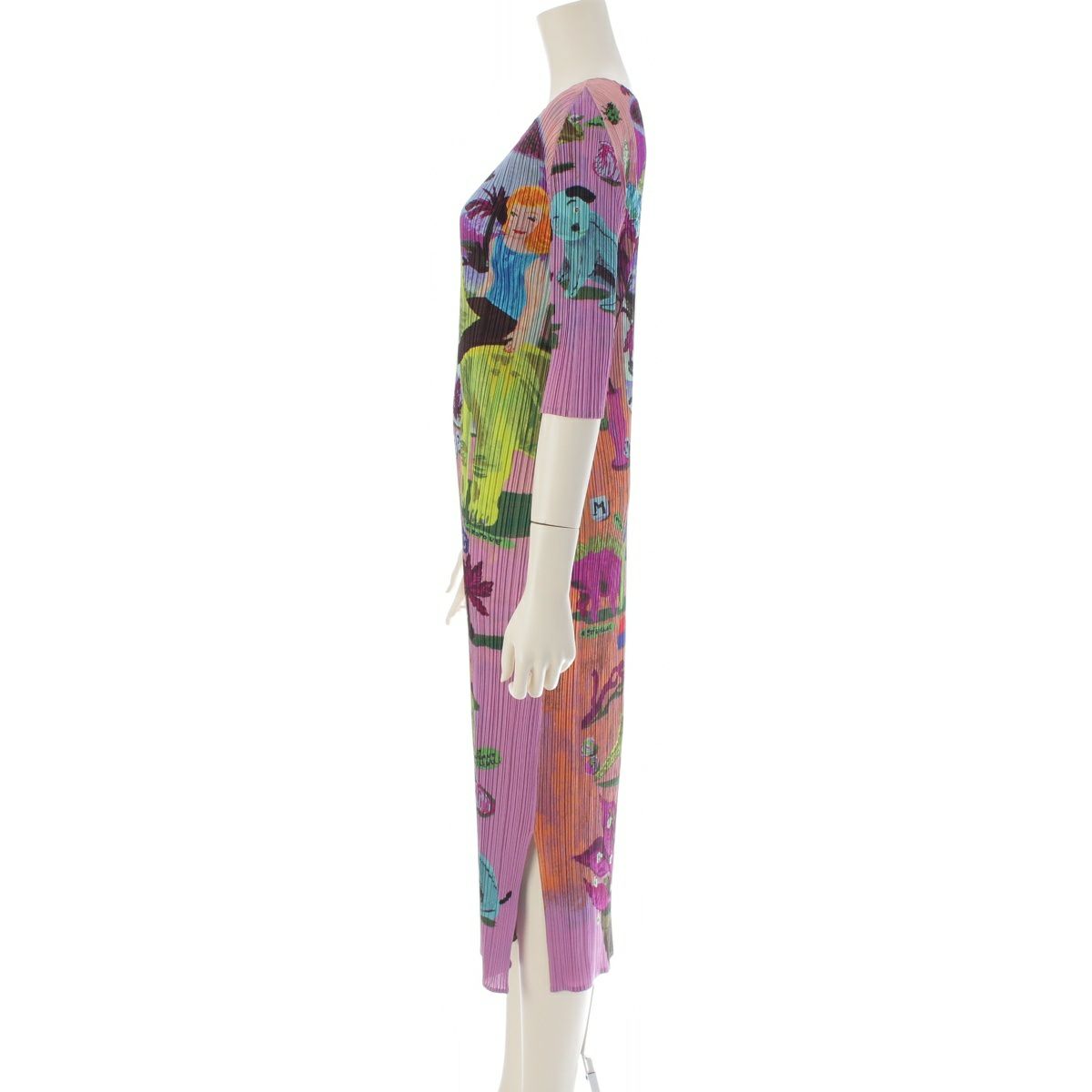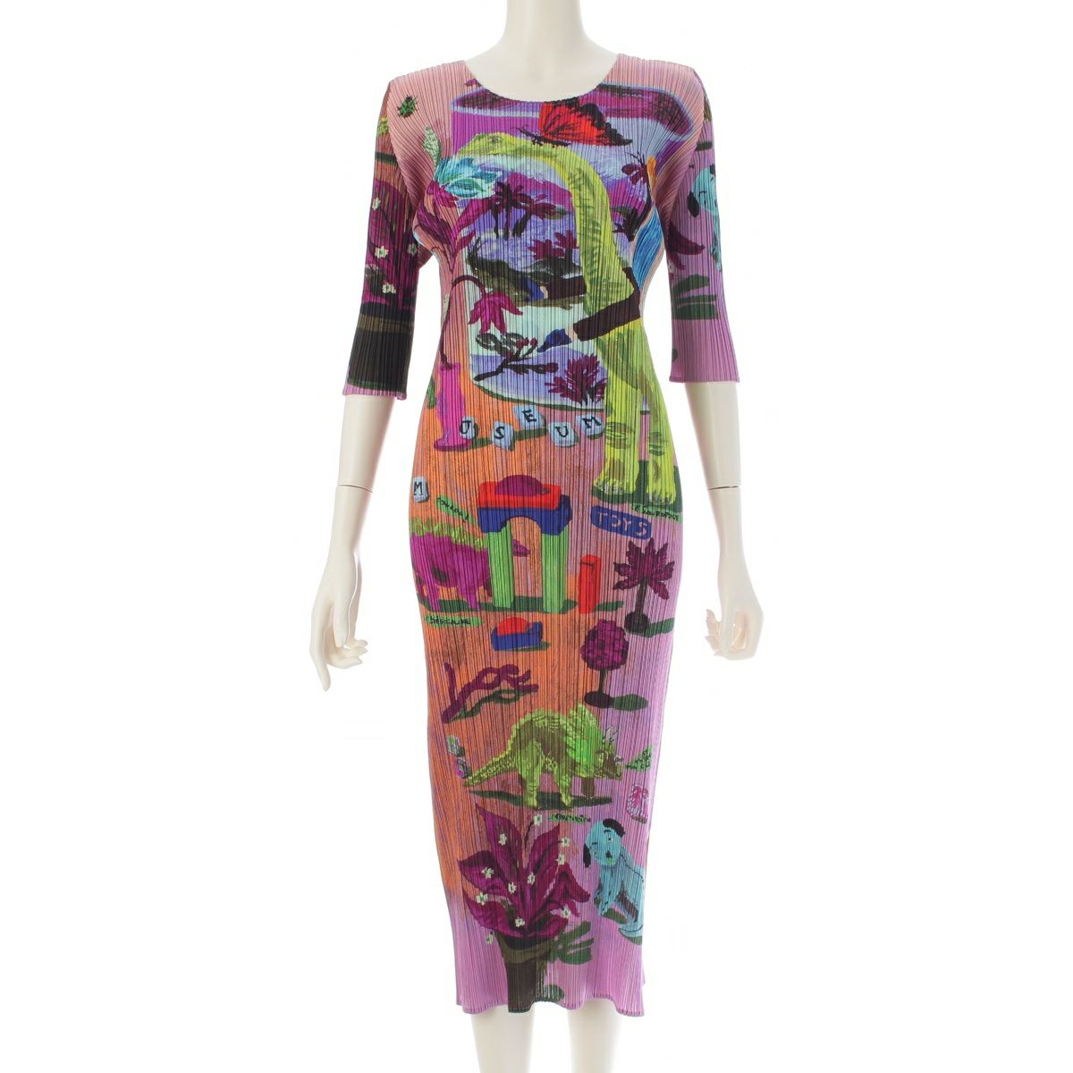 プリーツプリーズ イッセイミヤケ Nathalie Lete ナタリーレテ 恐竜の楽園 アニマル柄 ワンピース ドレス PP61-JH553 パープル系 マルチカラー 3