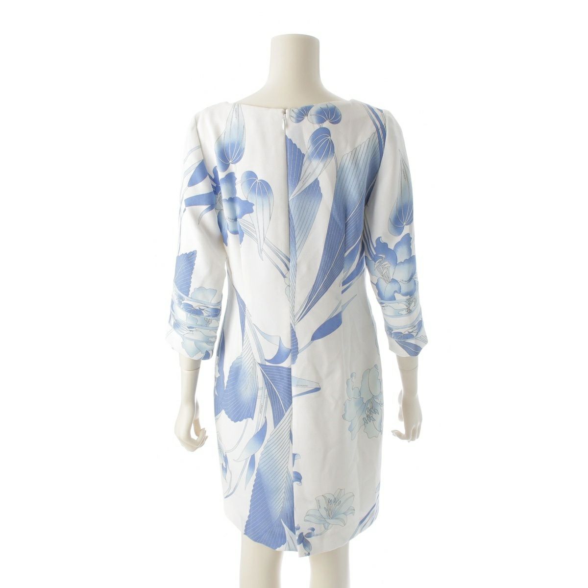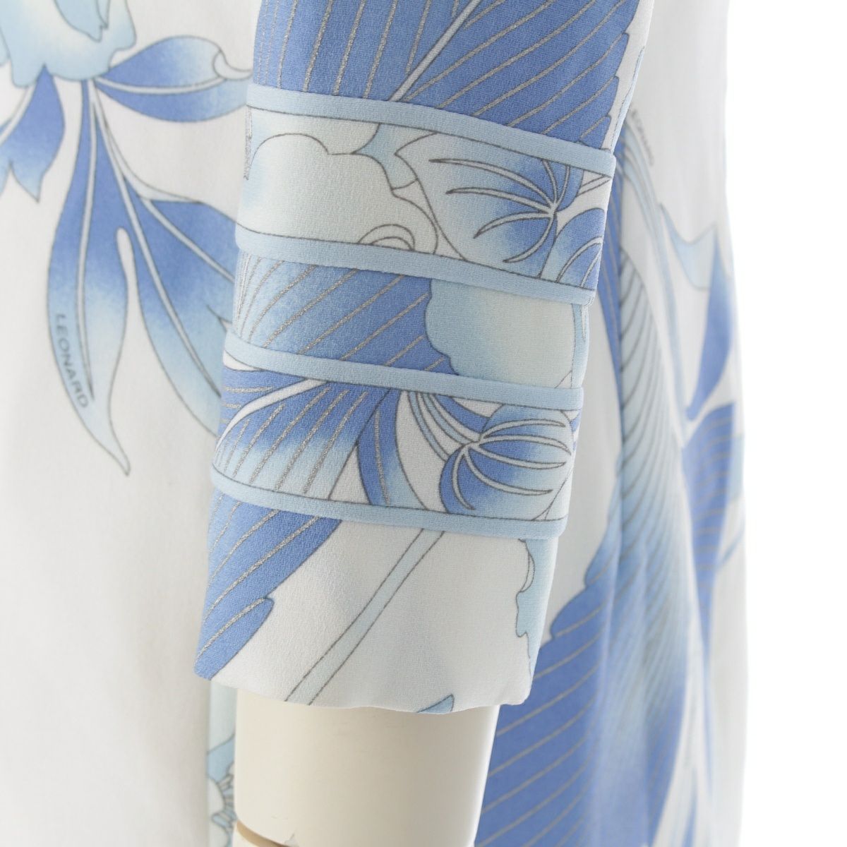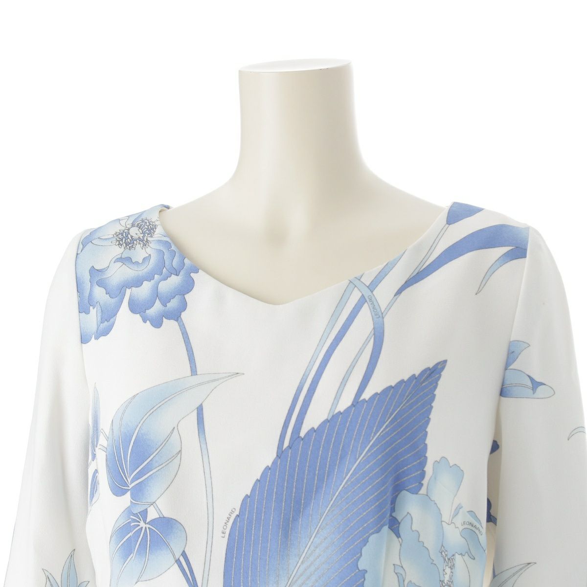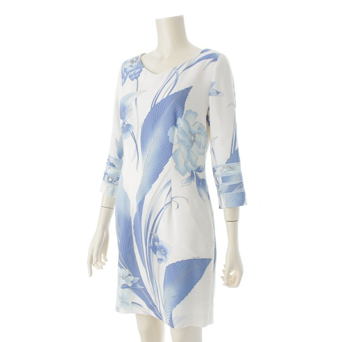 レオナール カンカン フラワー 花柄 総柄 ワンピース ドレス 0390320 ホワイト ブルー 38