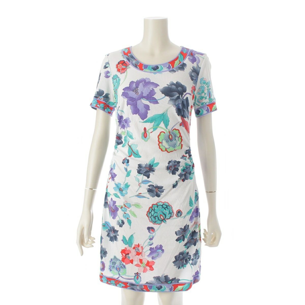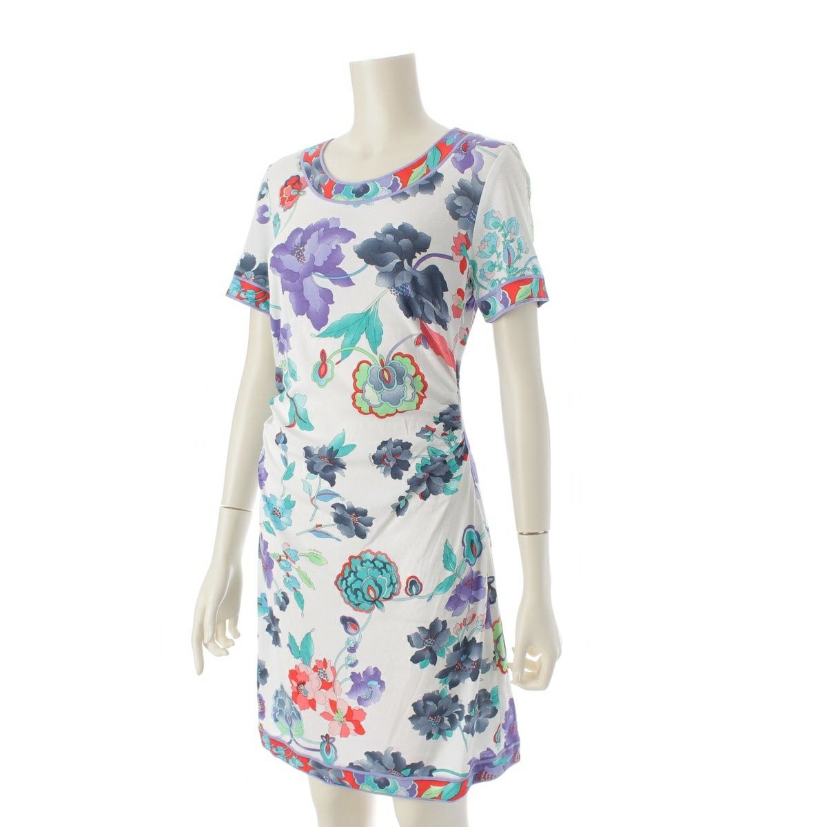 レオナール コットン フラワー 花柄 総柄 ワンピース ドレス 0330810 ホワイト マルチカラー 38