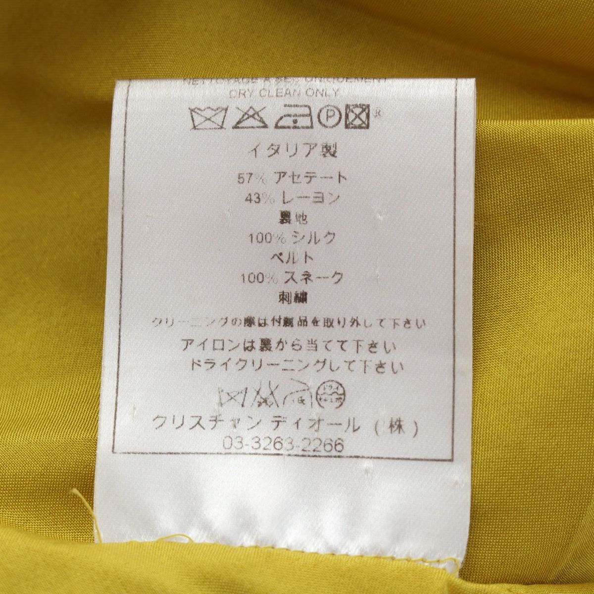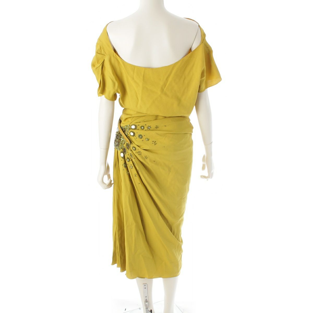 クリスチャンディオール 2007年AW ガリアーノ期 ビジュー スネークベルト ワンピース ドレス イエロー 38