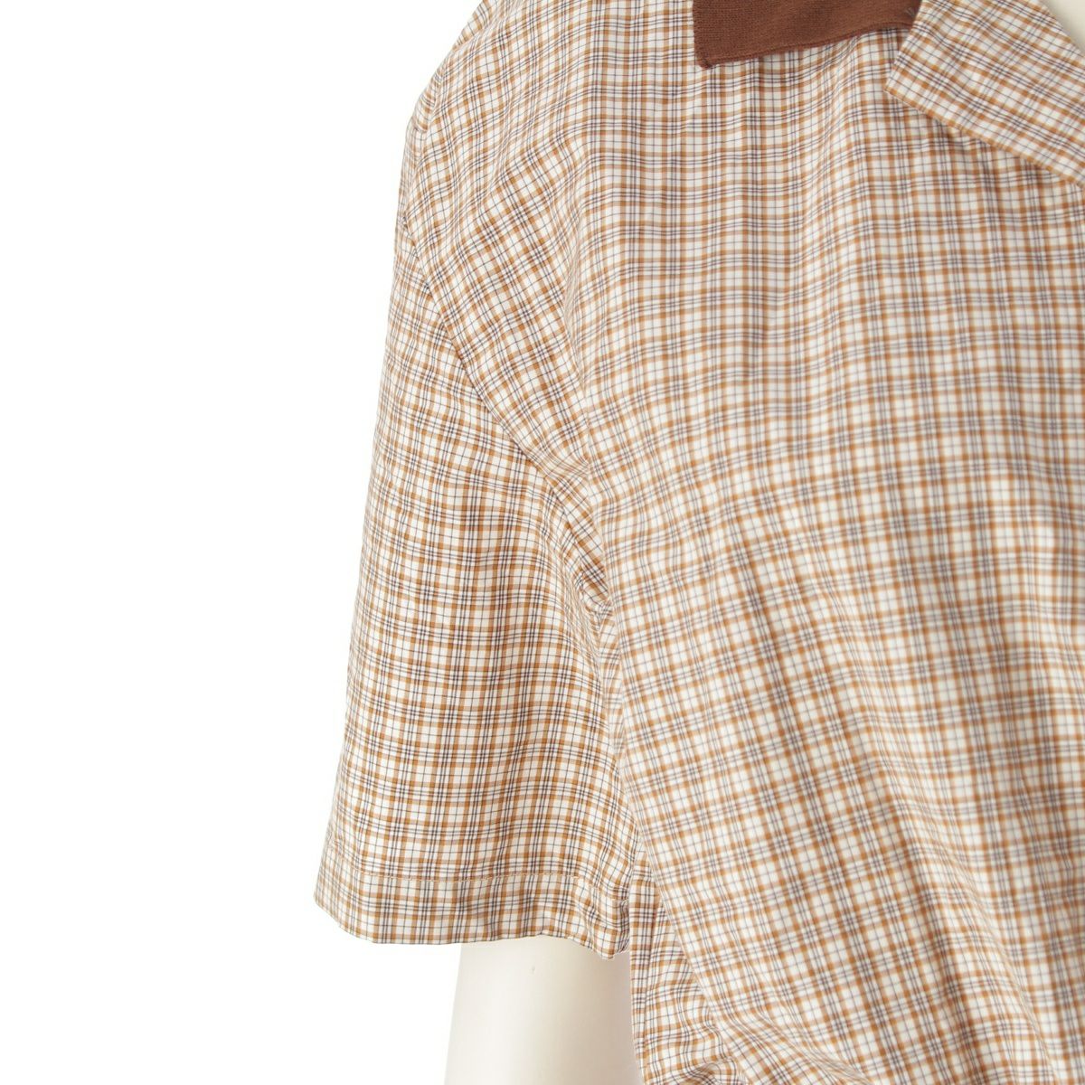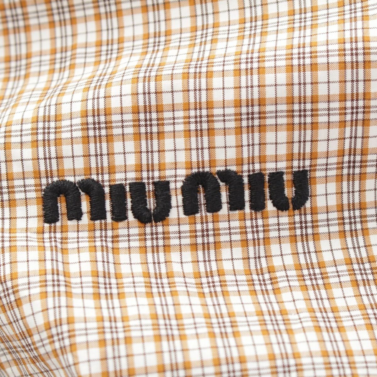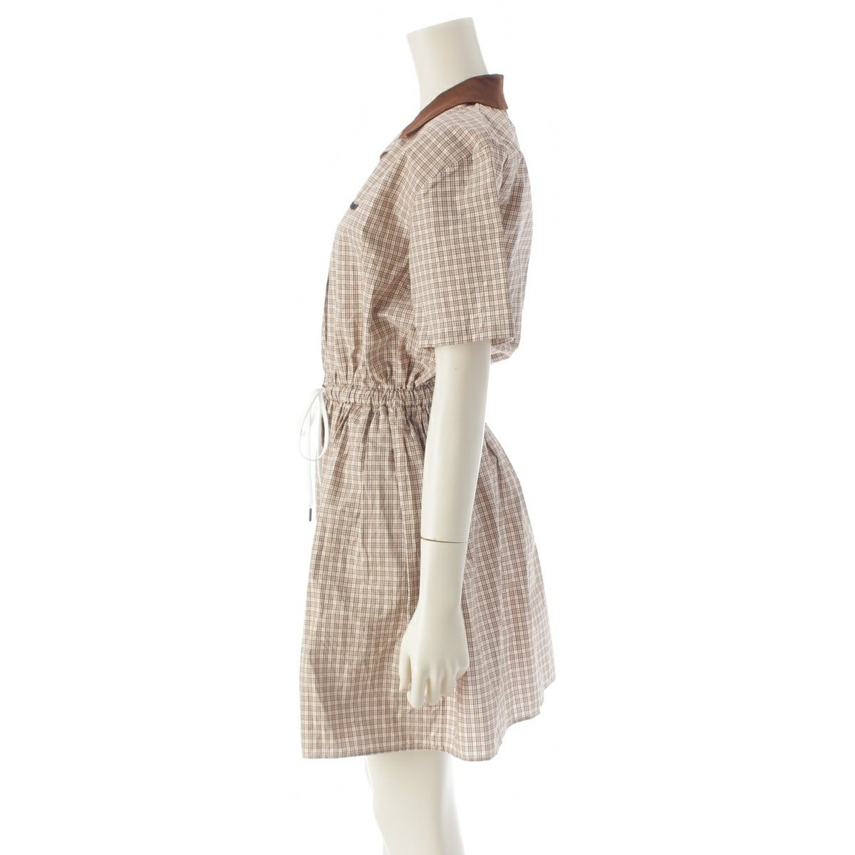 ミュウミュウ 2024 コットン ロゴ チェック 半袖 ワンピース MF5712 ベージュ 38