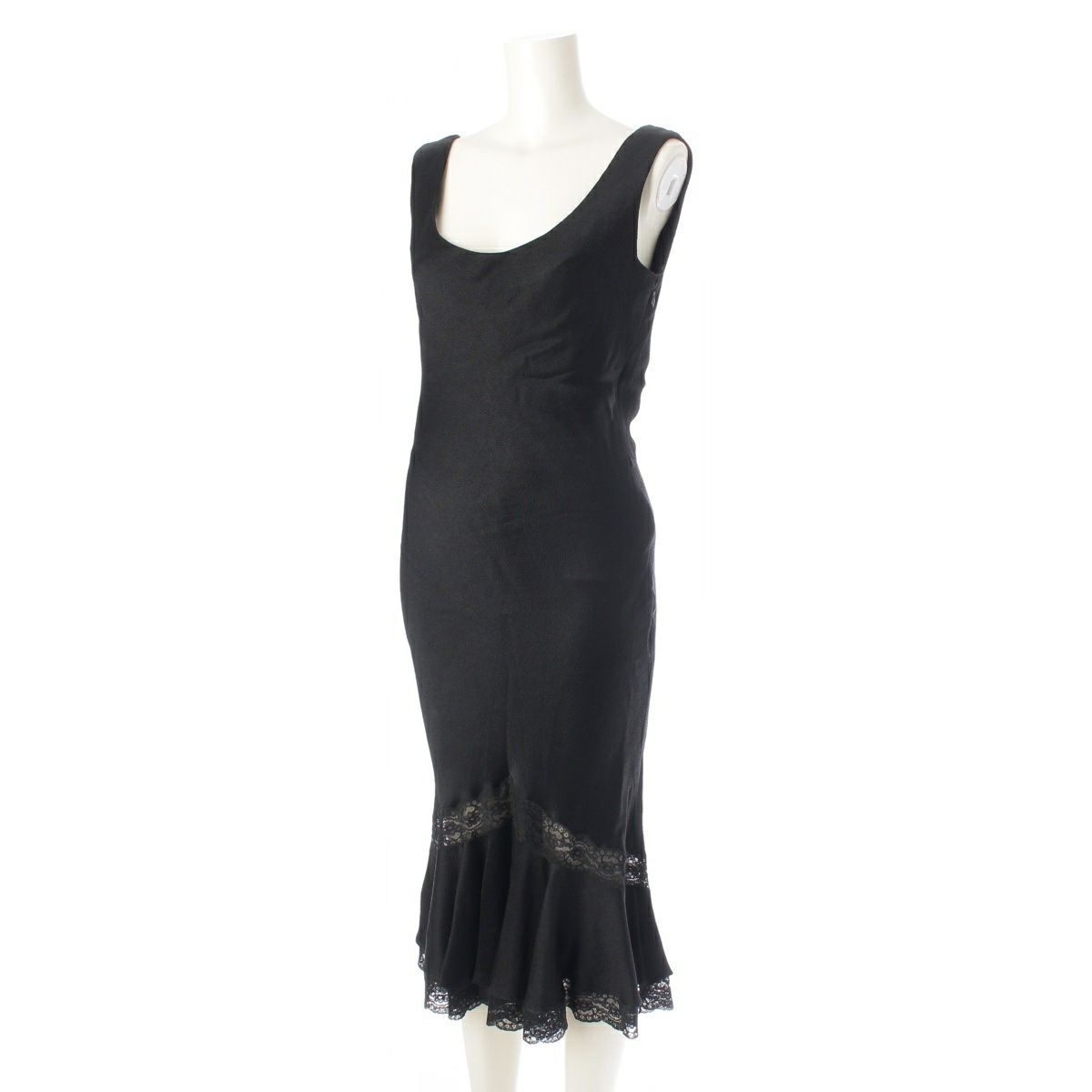 ディオール ビスコース×アセテート ガリアーノ期 フレア ワンピース ドレス 9P12066120 ブラック F38