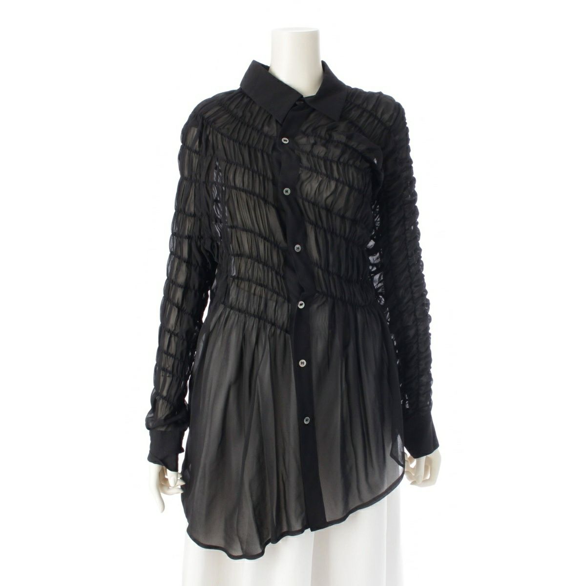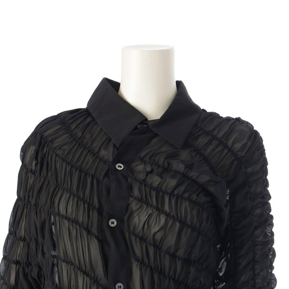コムデギャルソン AD2016 アシンメトリー ギャザー シアー素材 ロングシャツ ワンピース GR-B016 ブラック S