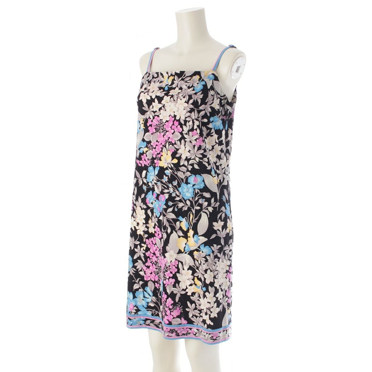 レオナール カンカン素材 花柄 チュニック ノースリーブ ワンピース ドレス 0160216 マルチカラー 38