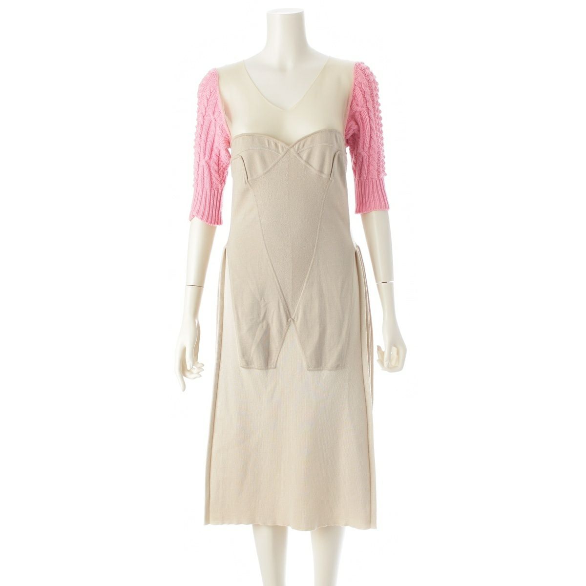 ジルサンダー 12年 ウール カシミヤ シルク ラフシモンズ ニット シアー ドッキング ワンピース ドレス HW754315 ベージュ 36