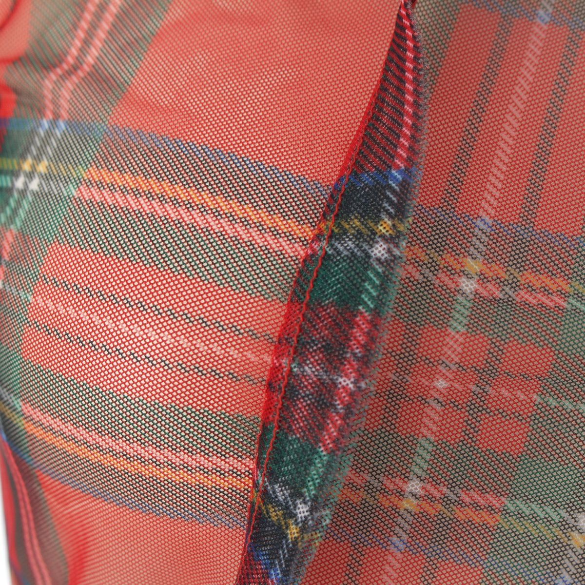 コムデギャルソン バイアス タータンチェック 変形 シアー ワンピース トップス レッド S