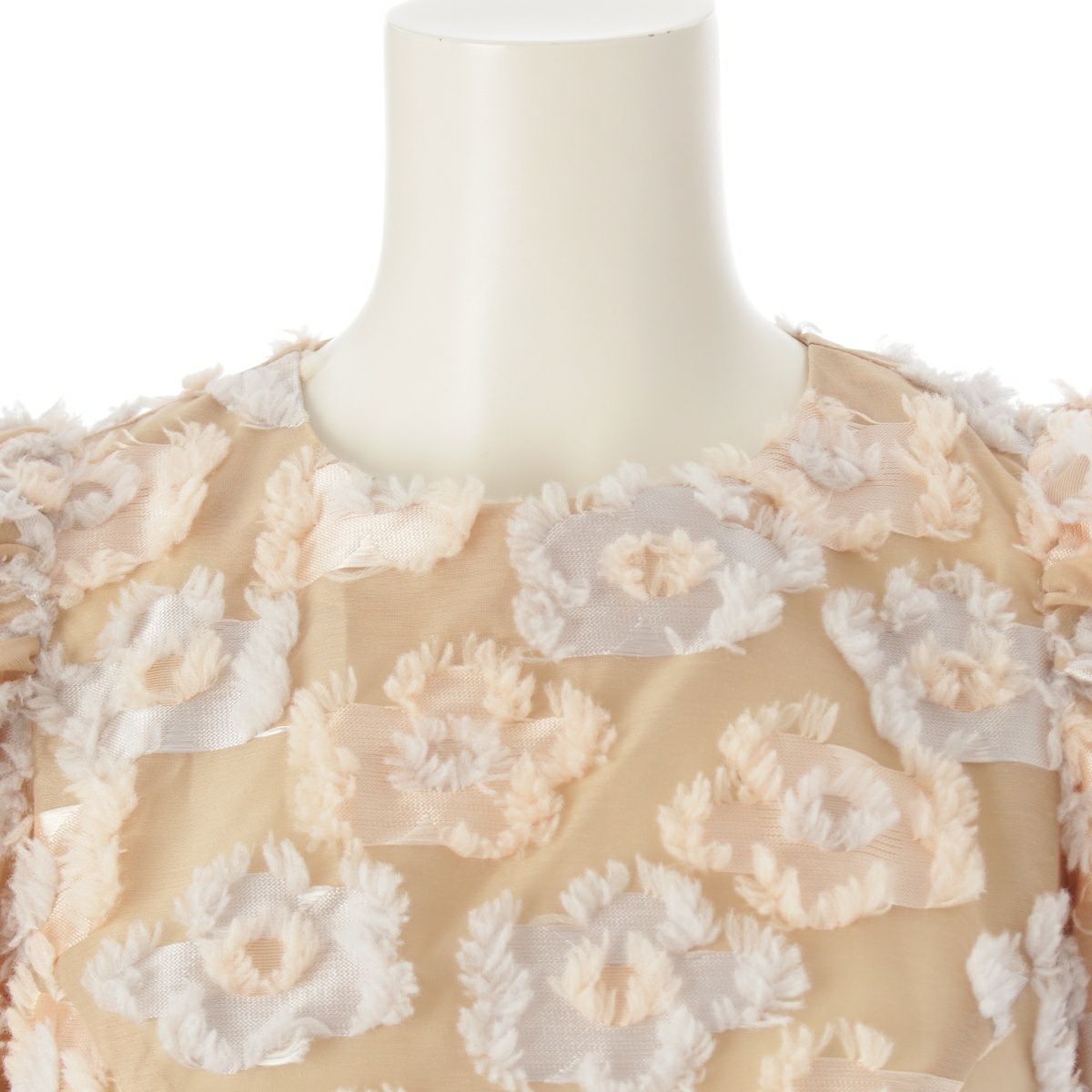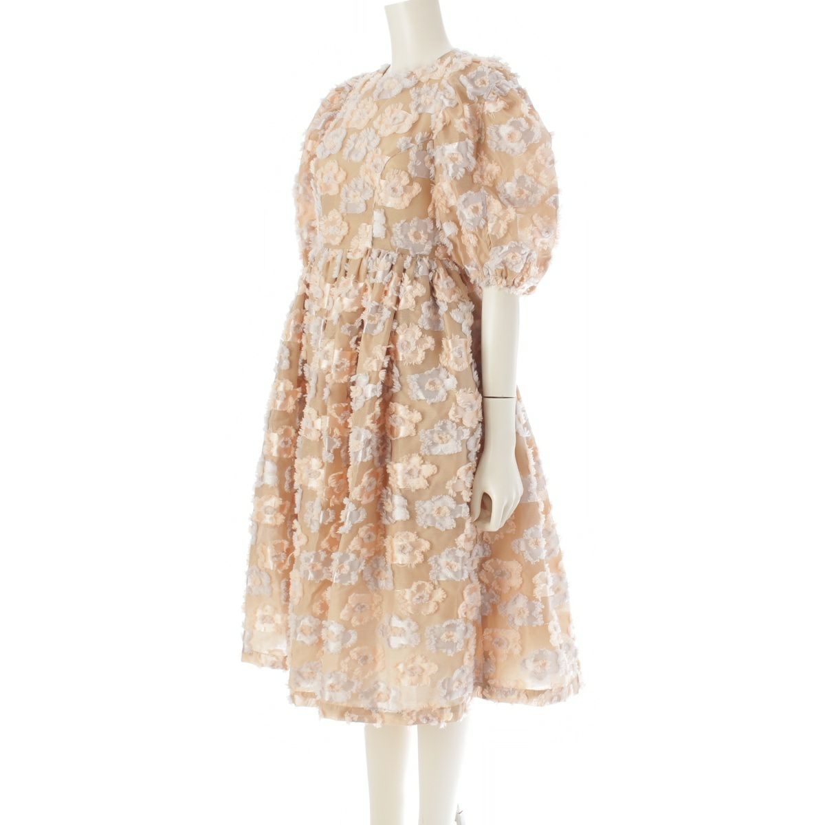 セブンテン バイ ミホカワヒト フローラル フラワーモチーフ パフスリーブ ワンピース ドレス 5S506 ベージュ S