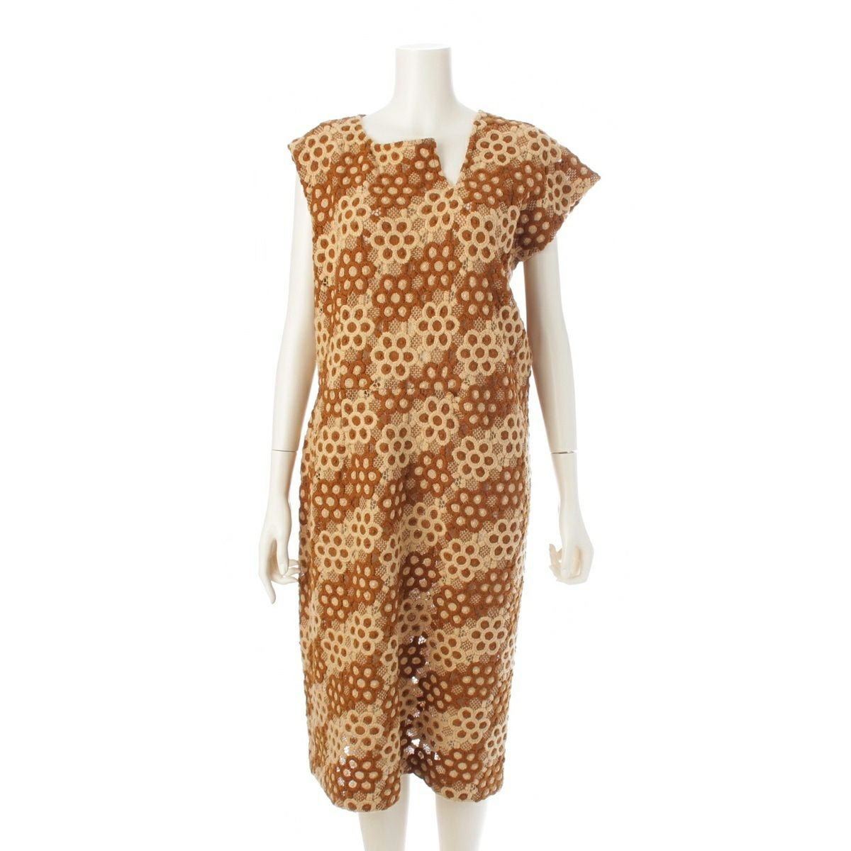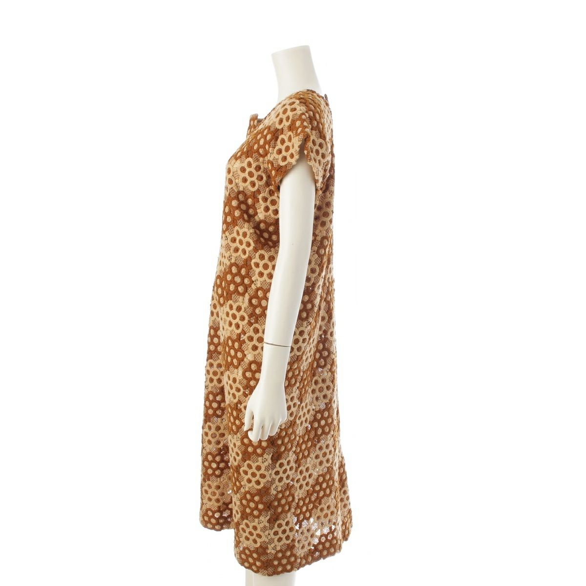 コムデギャルソン AD1999 ウール 総レース フラワー 刺繍 デザイン ノースリーブ ワンピース GO-04003S ブラウン系 S