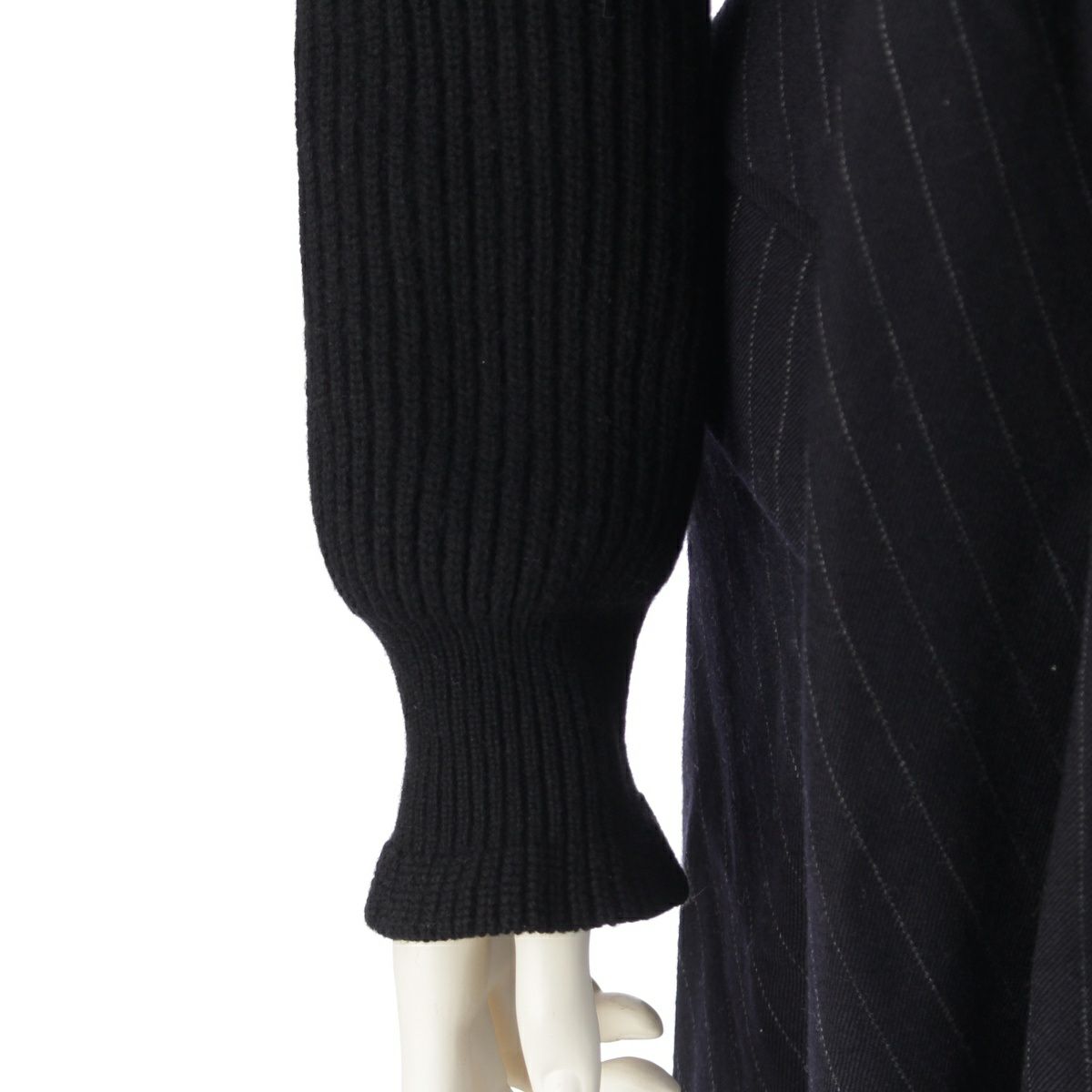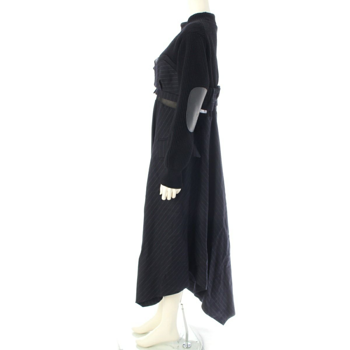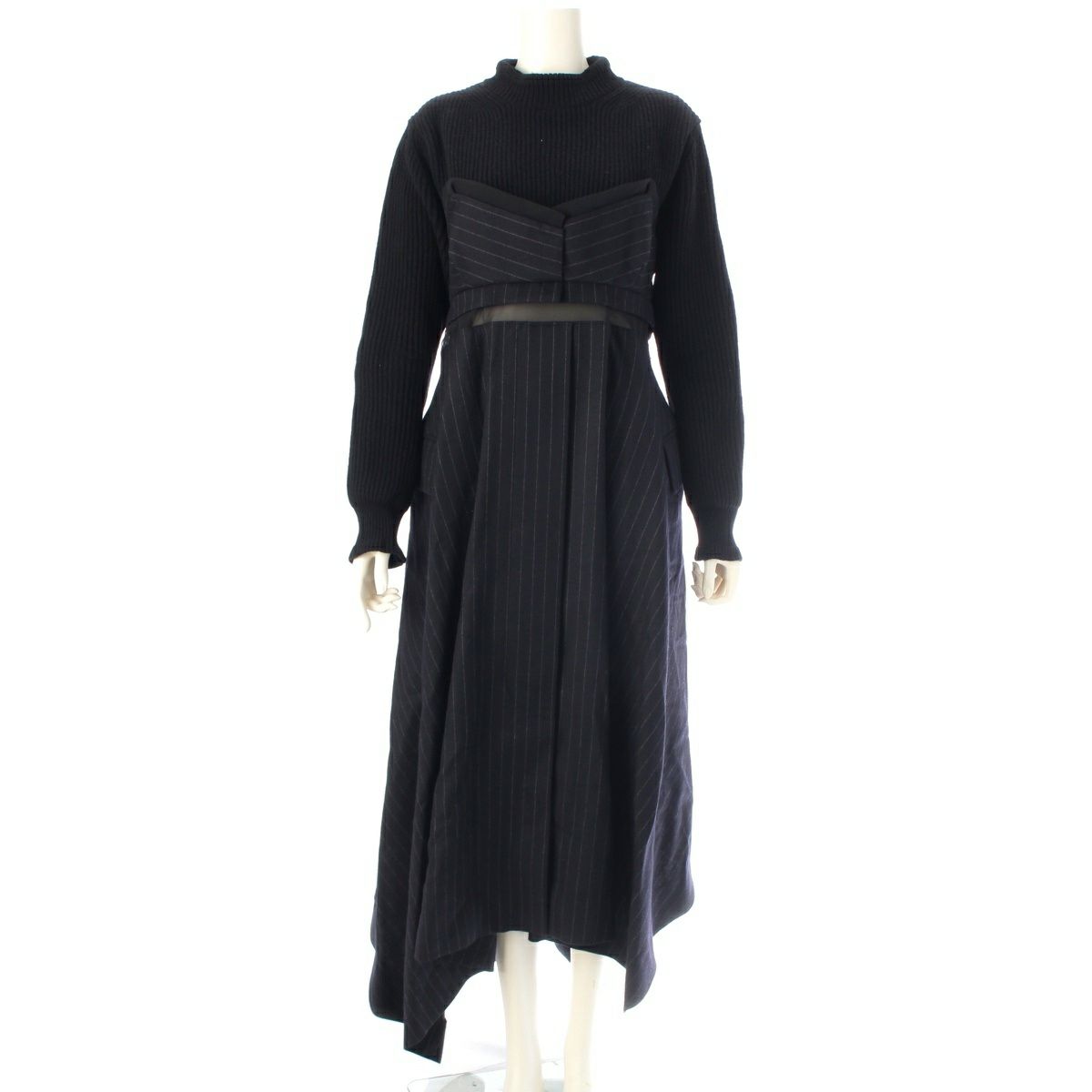 サカイ 22AW ウール Wool Knit × Chalk Stripe ワンピース ドレス 22-06327 ブラック×ネイビー 2