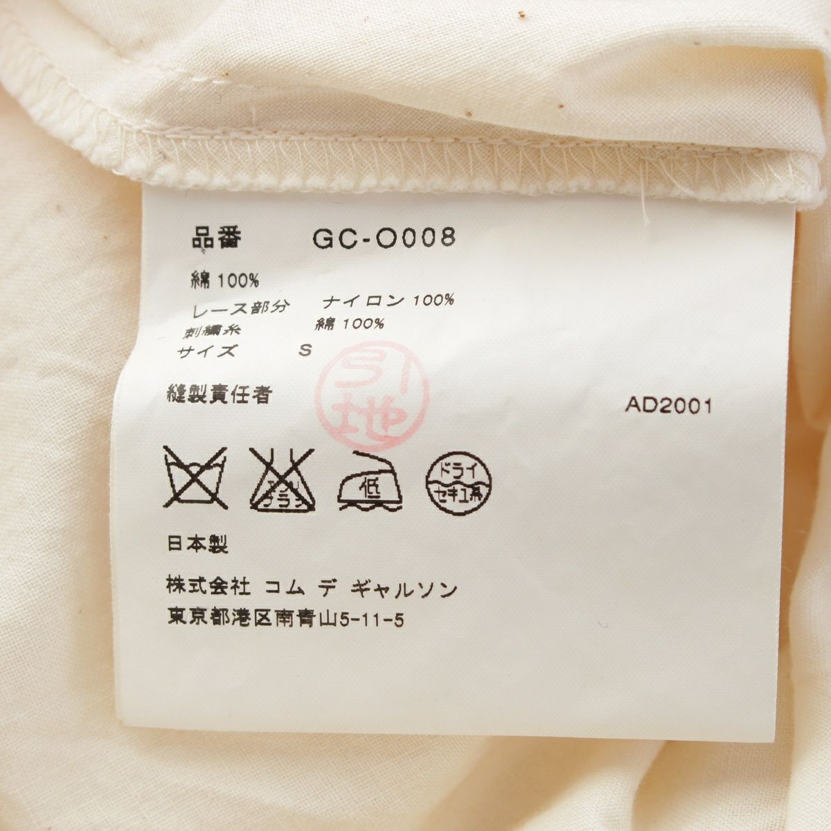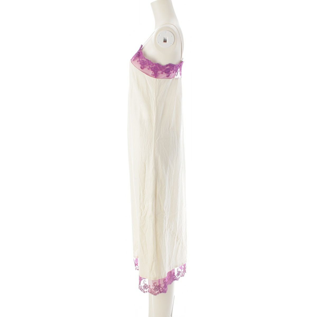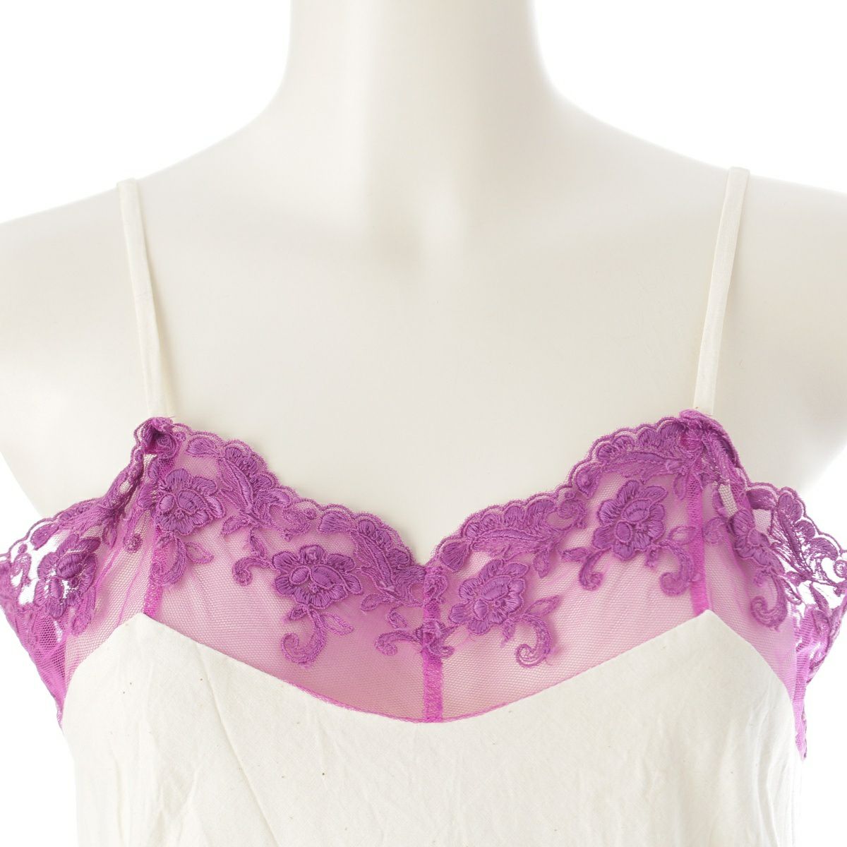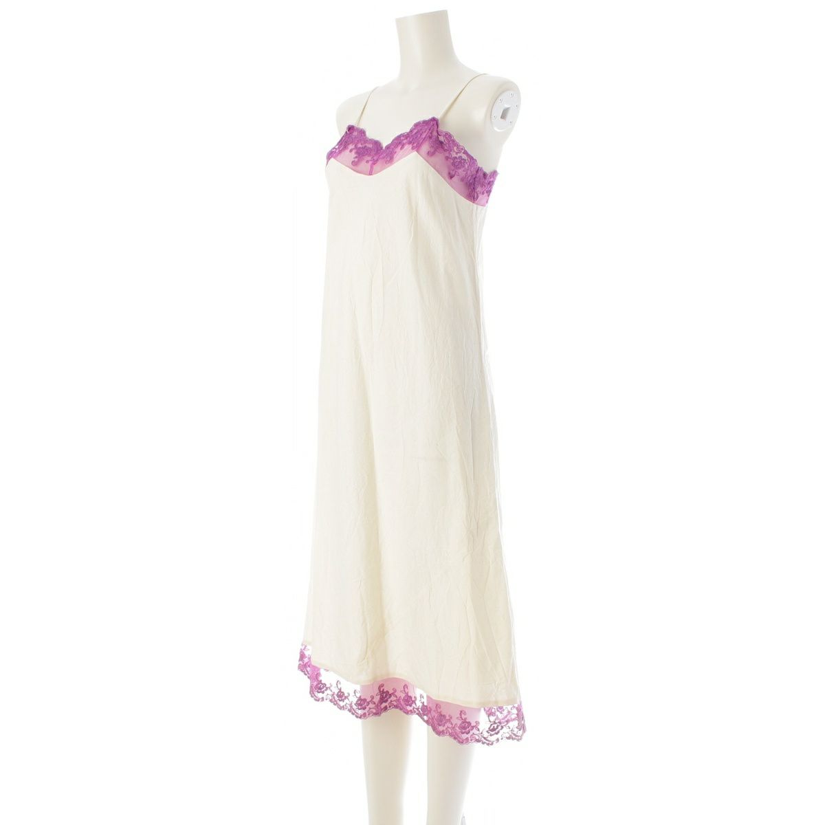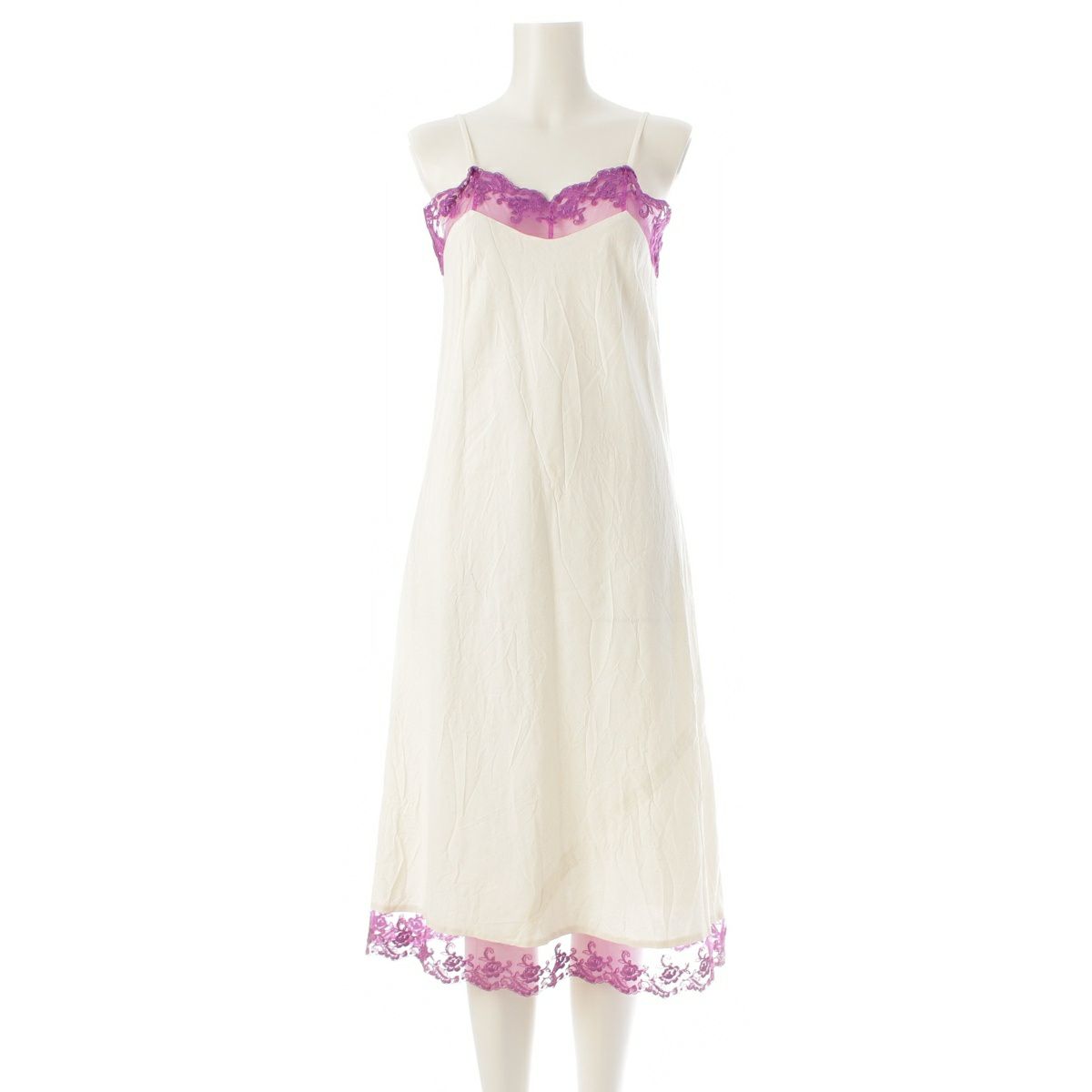 コムデギャルソン AD2001 01AW コットン レース切替 キャミソール ロング ワンピース ドレス GC-O008 パープル オフホワイト S