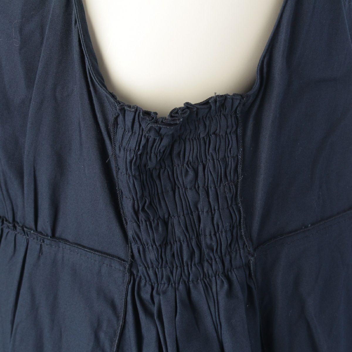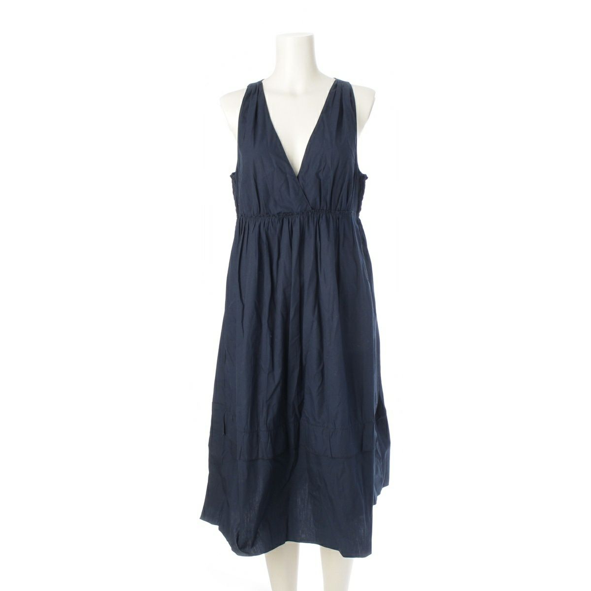 ミュウミュウ コットン ギャザー フレア ワンピース ドレス ネイビー 38