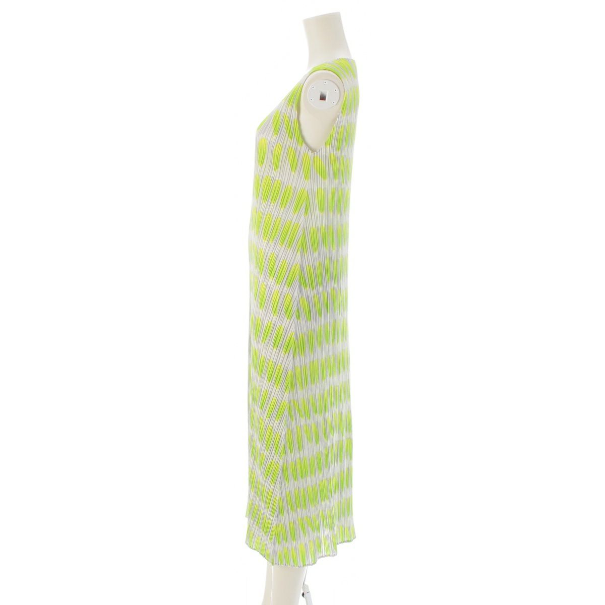 プリーツプリーズ ペタル 花柄 ノースリーブ ワンピース PP06-JH222 グレー×グリーン系 2