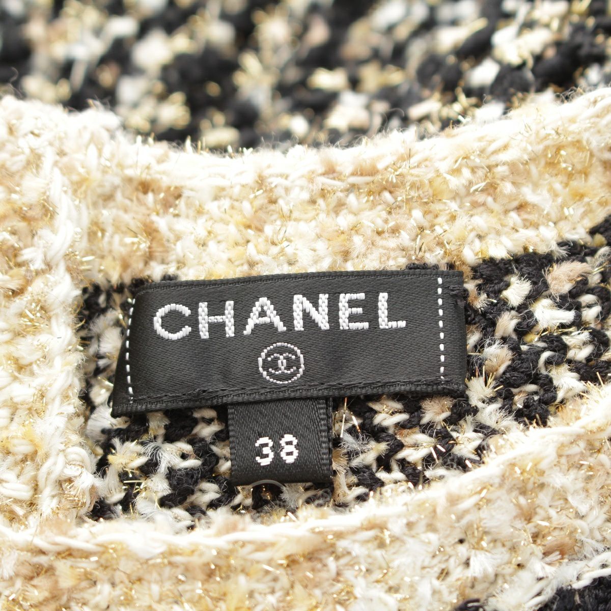 シャネル 19A ツイード エジプトボタン ニット ワンピース ドレス ブラック ゴールド 38