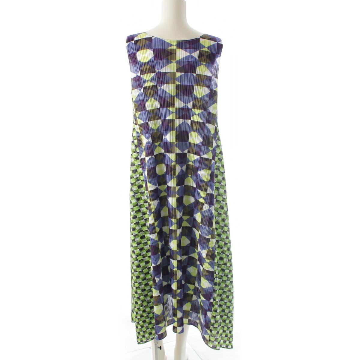 プリーツプリーズ イッセイミヤケ 13AW 幾何学模様 Aライン ノースリーブ ワンピース ドレス PP33-JH754 マルチカラー 4