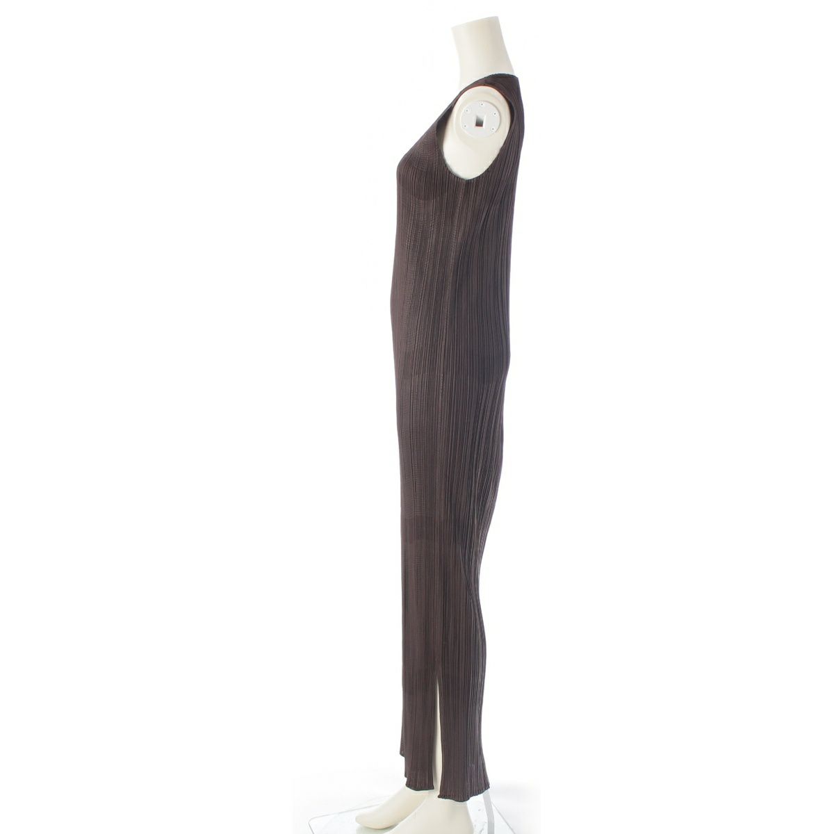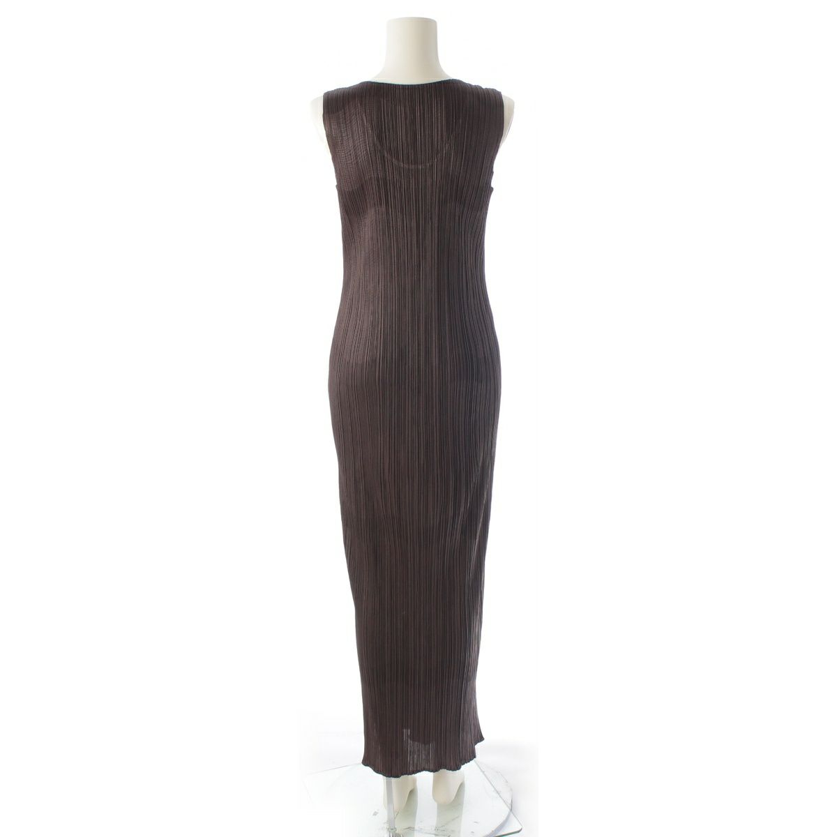 プリーツプリーズ イッセイミヤケ 99AW ラインデザイン ノースリーブ ロング ワンピース ドレス PP94-JH632 チョコレート ブラウン 4