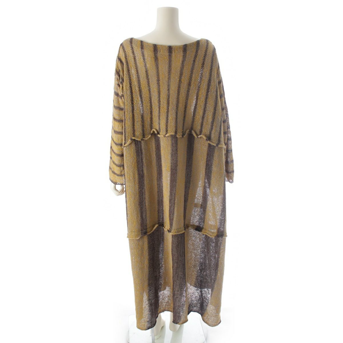 イッセイミヤケ 70-80s オールスタイル 変形 平面 Aライン マキシニット ワンピース イエロー グレー