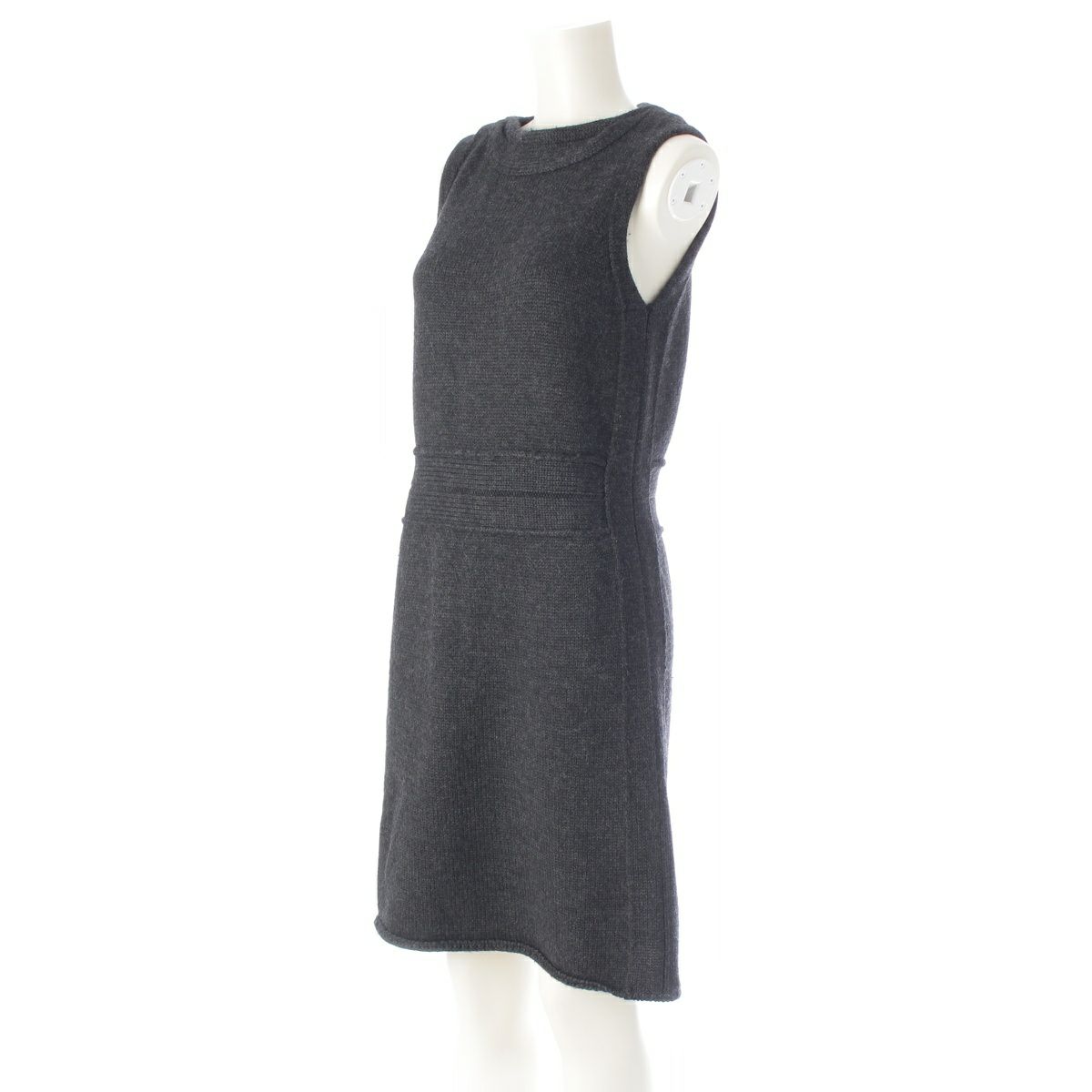 ジャンポールゴルチエ 90s ジャンポールゴルチエ ファム ウール 変形 ボートネック トリム ニット ミニ ドレス ワンピース ダークグレー 40