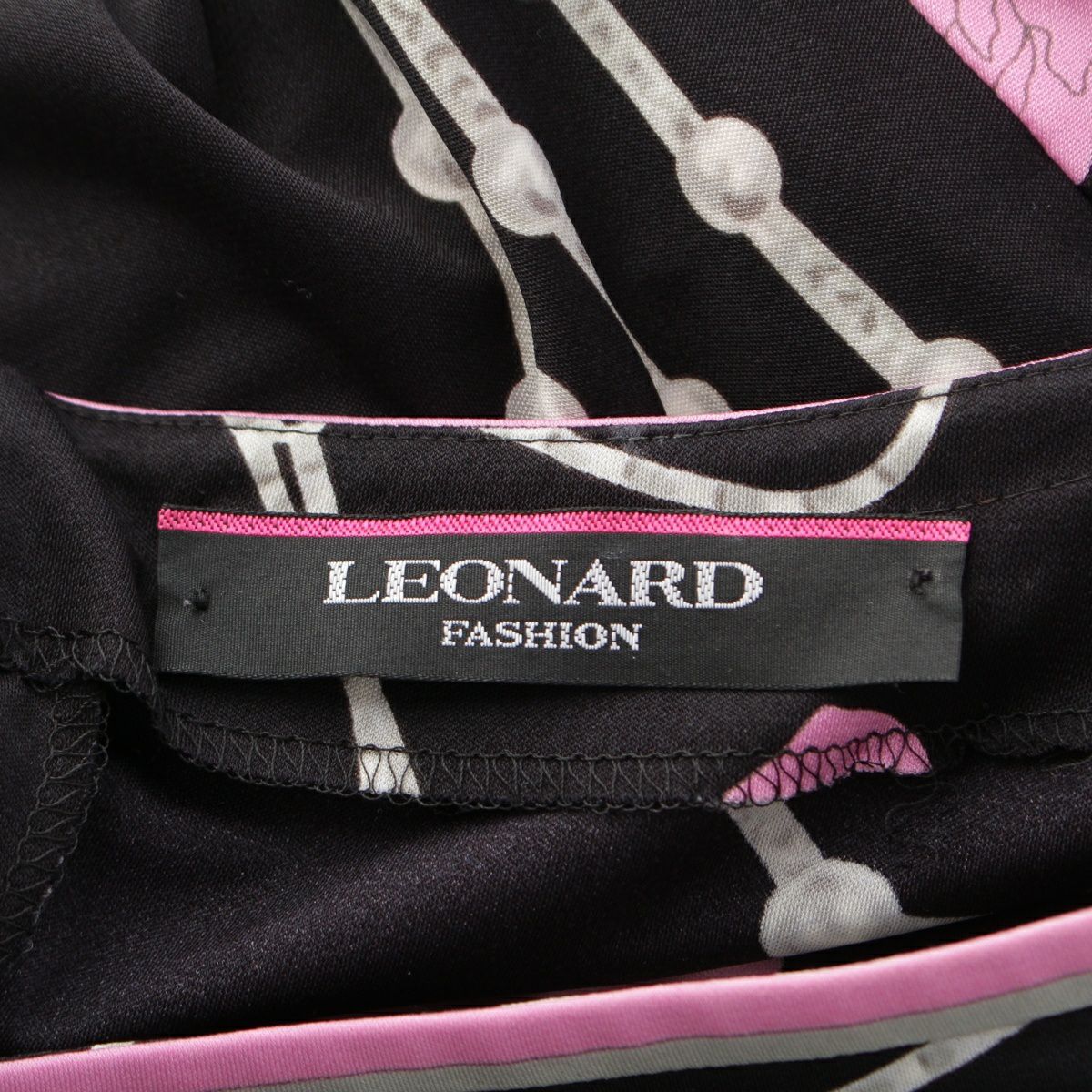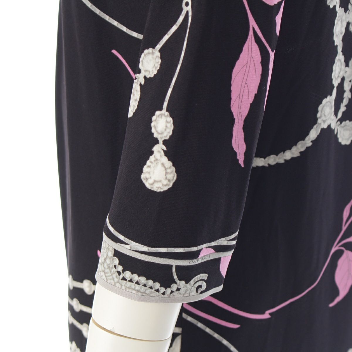 レオナール カンカン フラワー 花柄 総柄 ワンピース ドレス 0360303 ブラック×ピンク系 36