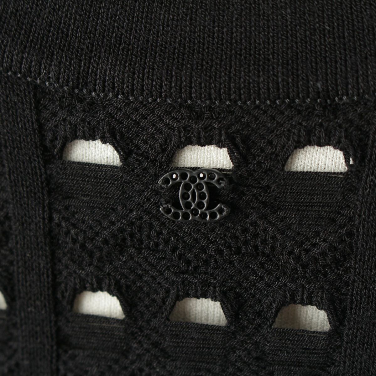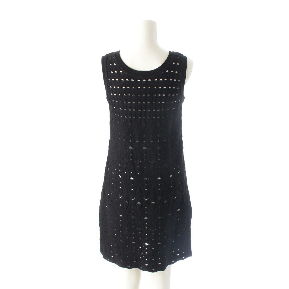 シャネル パンチング ノースリーブ ニット ワンピース P43418 ブラック 36