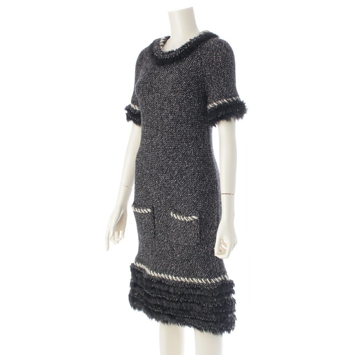 シャネル カシミヤ ウール ココマーク ファー ワンピース P39939 グレー 36
