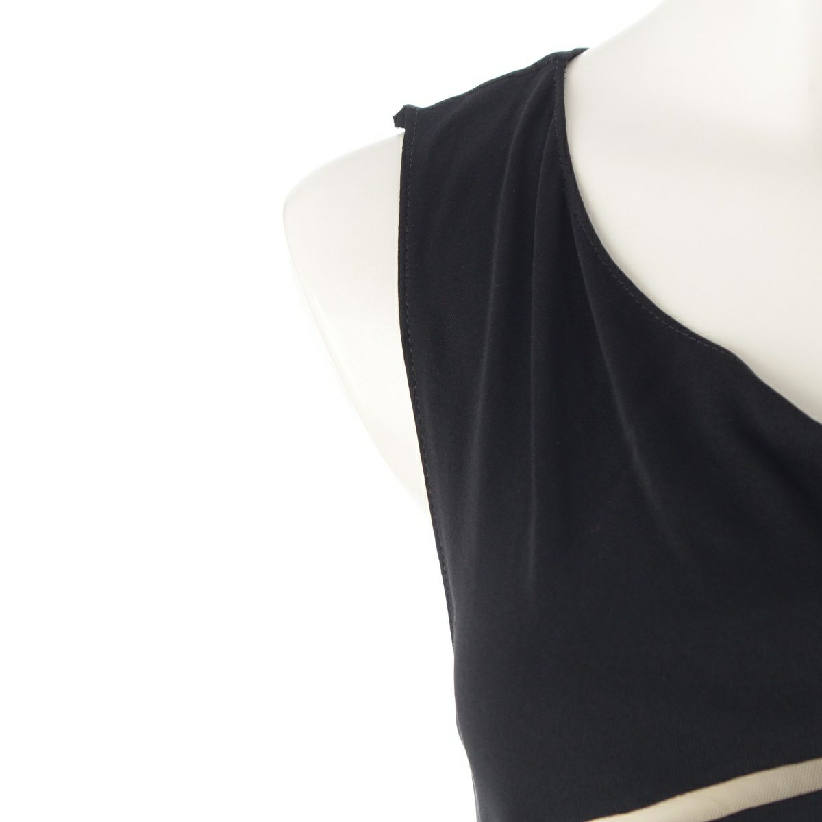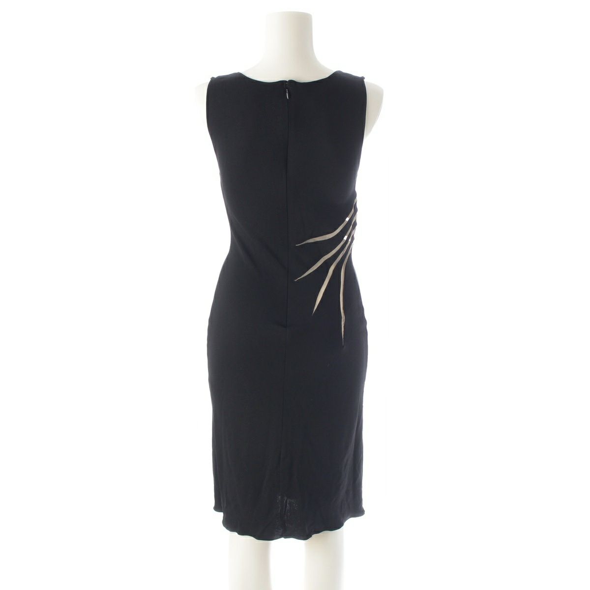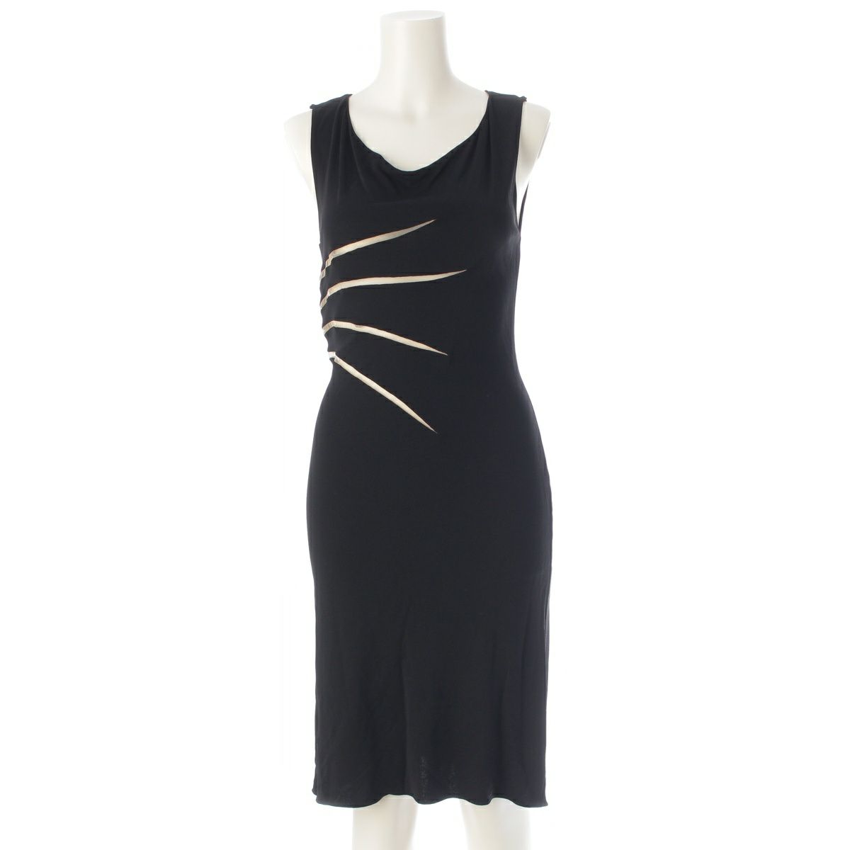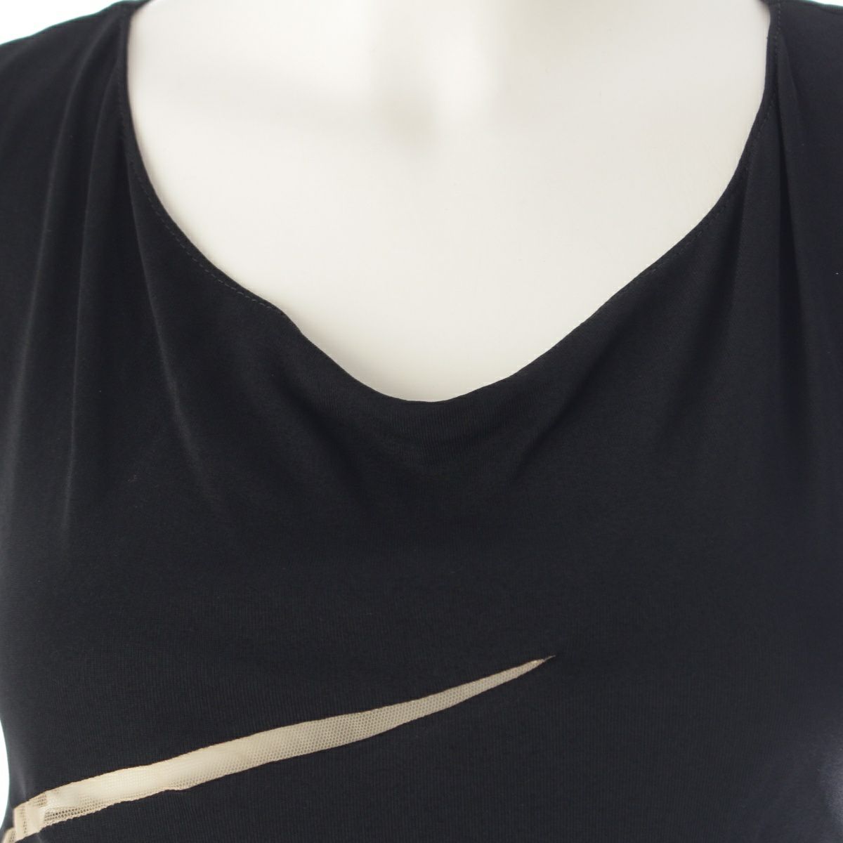ジャンニ・ヴェルサーチェ ヴィンテージ シルク カットアウト シアー切替 ノースリーブ ワンピース ドレス ブラック