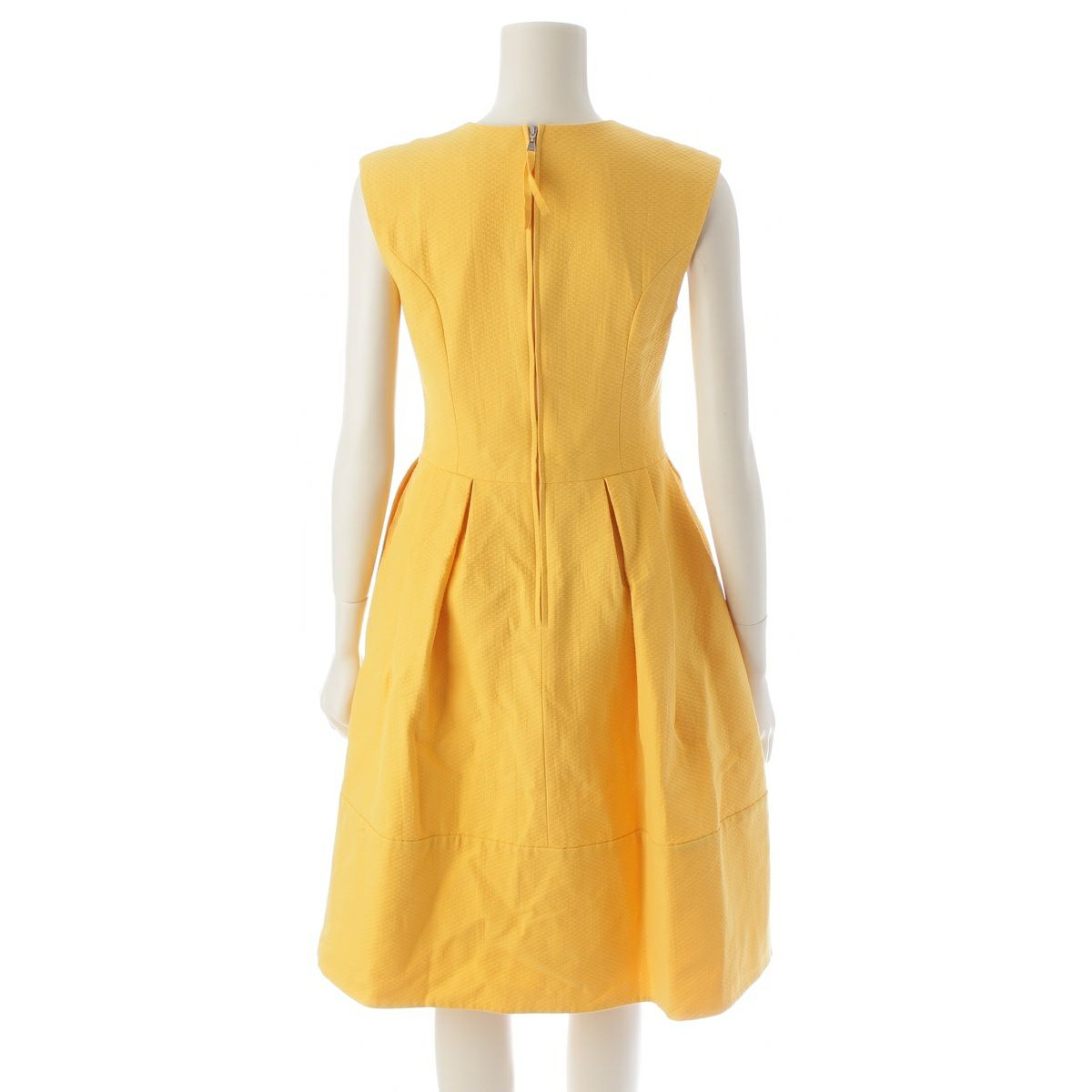 フォクシー 19年 Vバロン Vネック フレア 切替タック ノースリーブ ワンピース ドレス 40322 イエロー 38