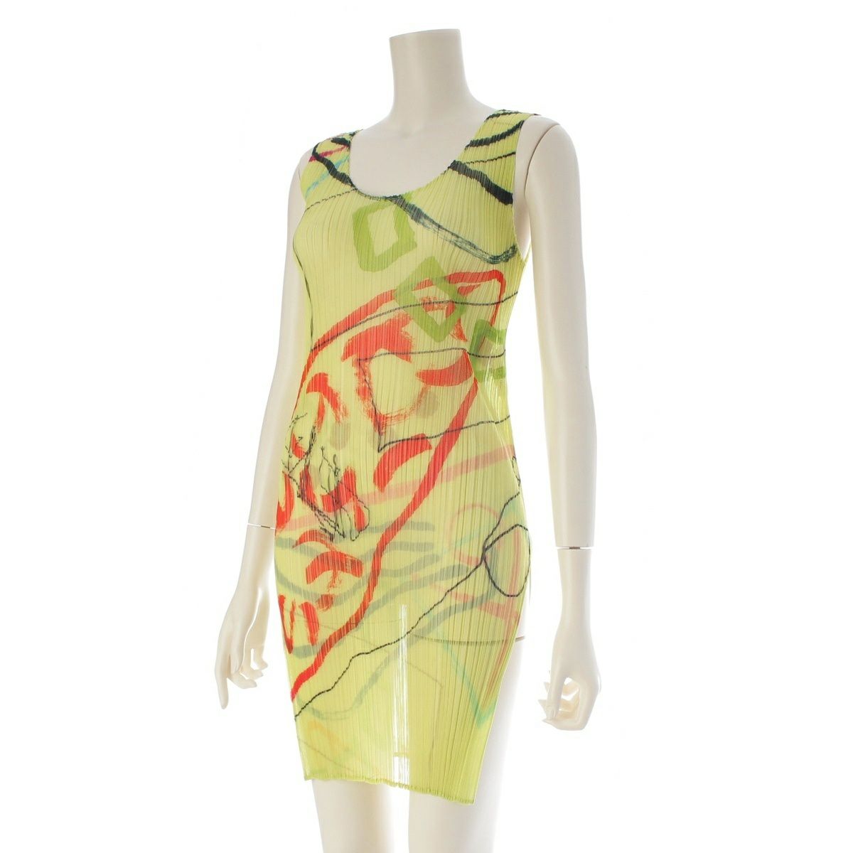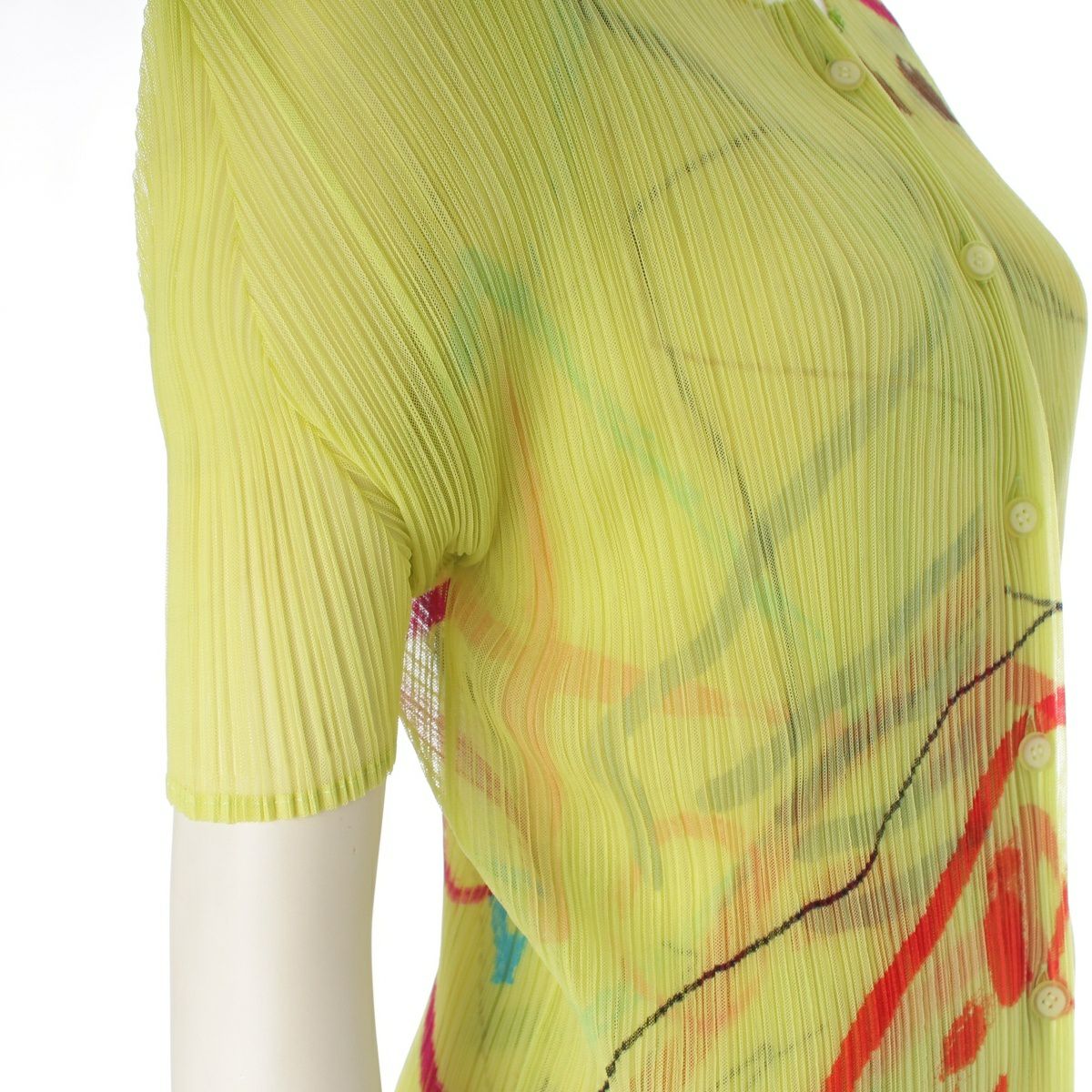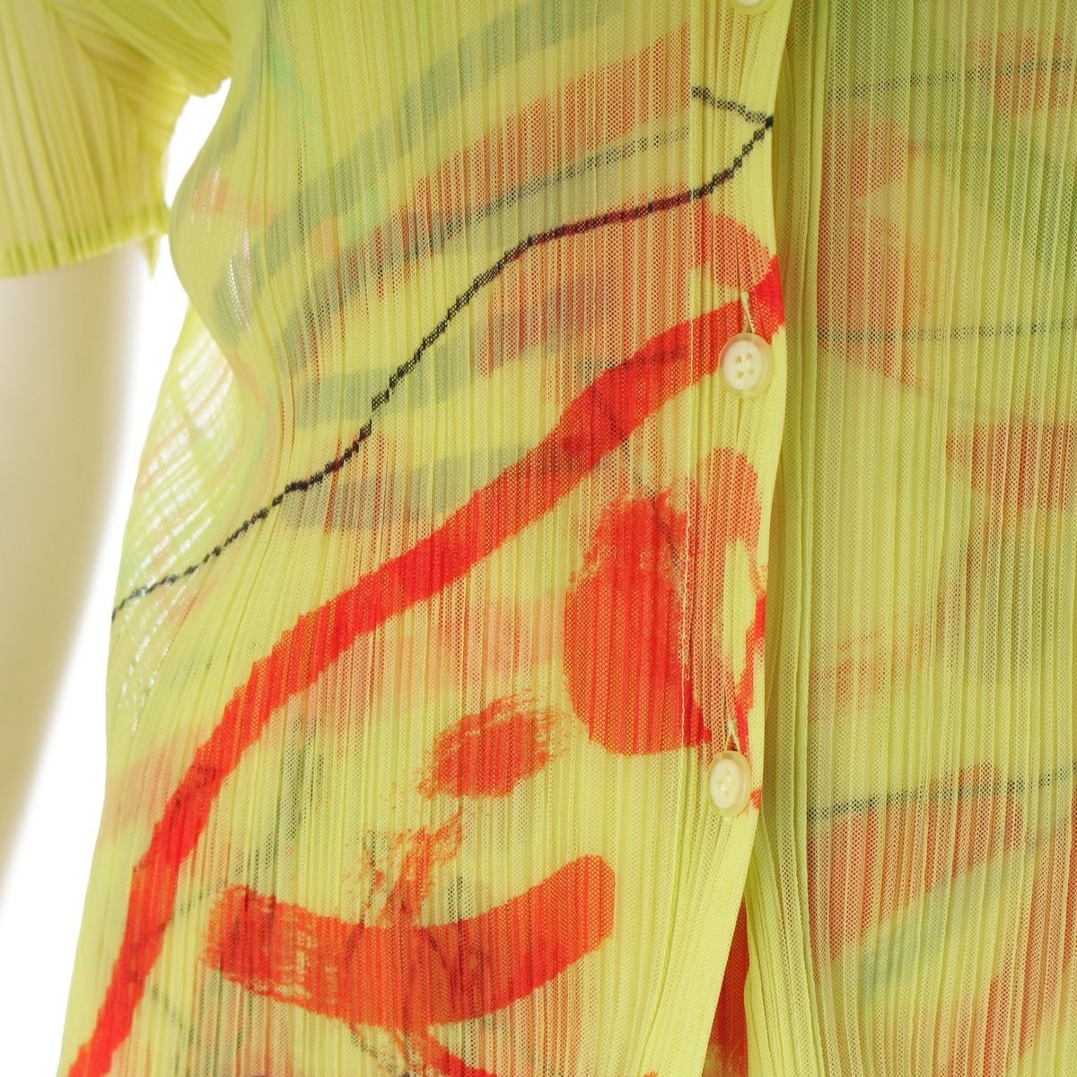プリーツプリーズ イッセイミヤケ 総柄 マルチ グラフィック 半袖カーディガン ノースリーブ ワンピースセットアップ PP12-JJ426 PP12-JK422 イエロー系 4