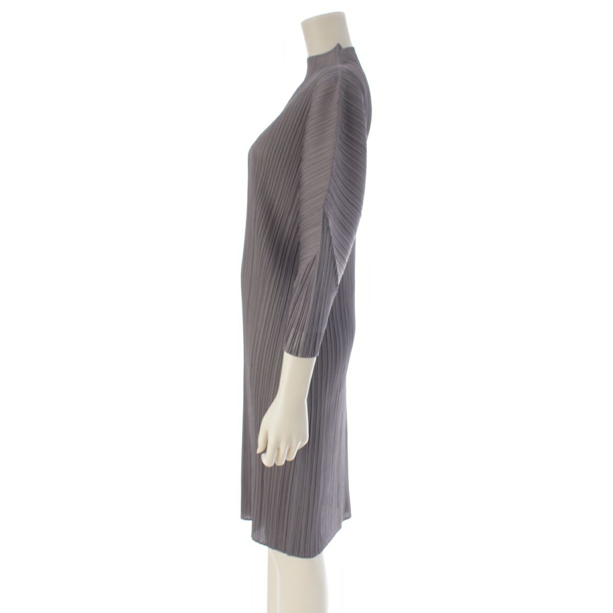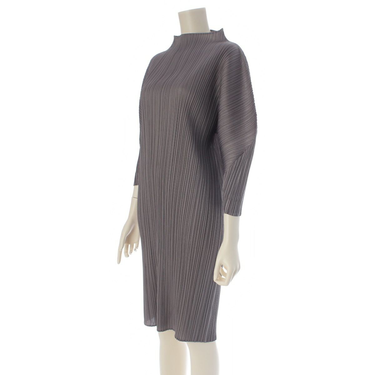 プリーツプリーズ 七分袖 モックネック ワンピース ドレス PP91-JH615 グレー 3