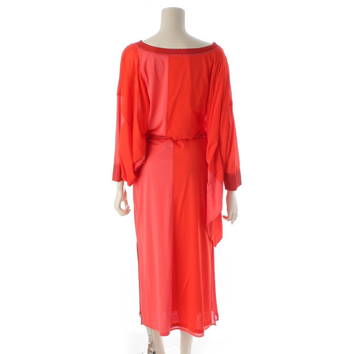エルメス 23年 シルク 切替 ベルト付き ワンピース トップス スカート ロング レッド ピンク 38