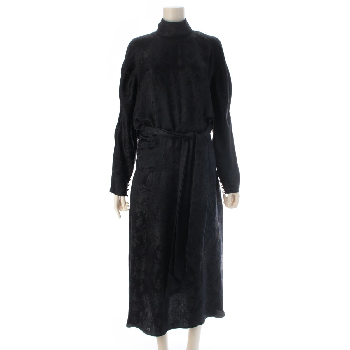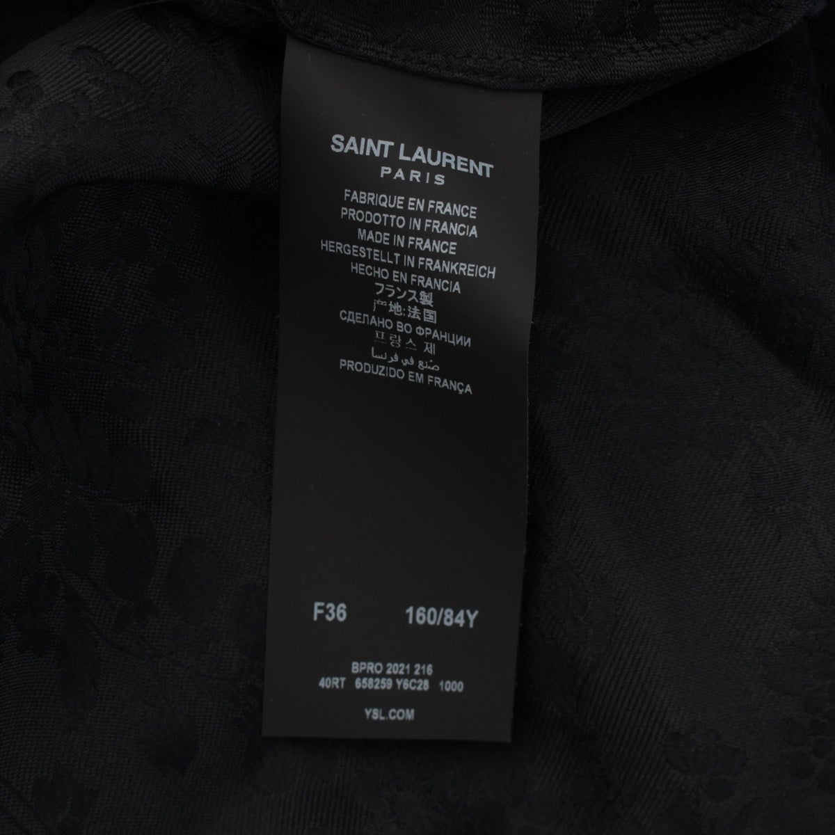 サンローラン 2021 シルク 花柄 フラワー ベルト付き ワンピース ドレス ブラック 36