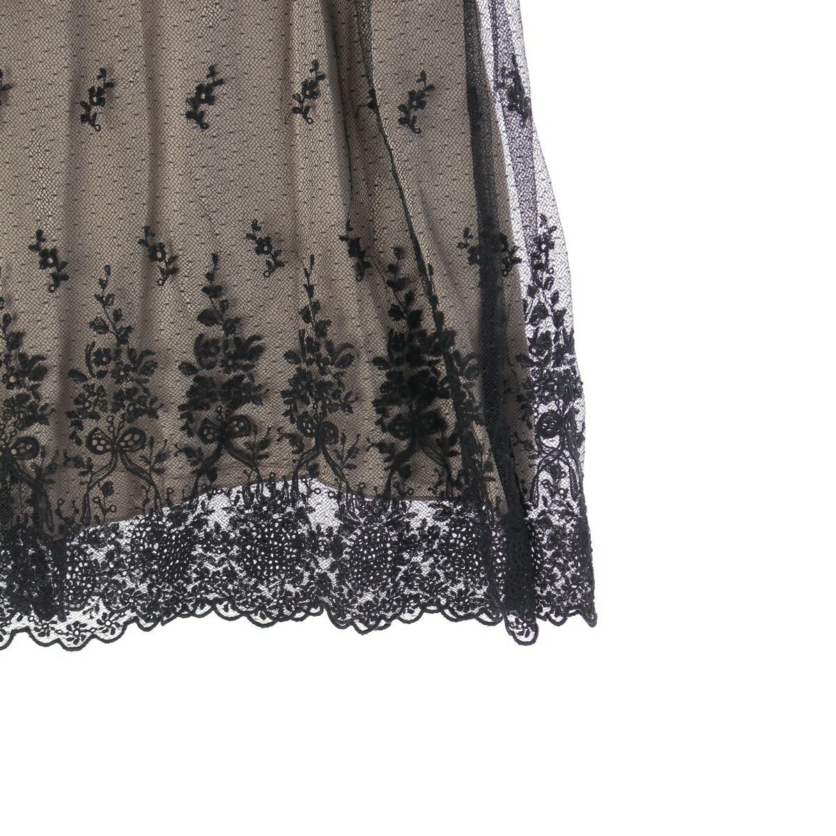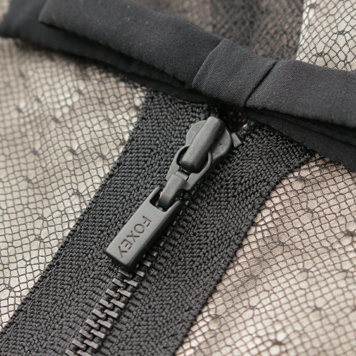 フォクシー シースルー ノースリーブワンピース シャイニーレース ブラック×グレージュ 38