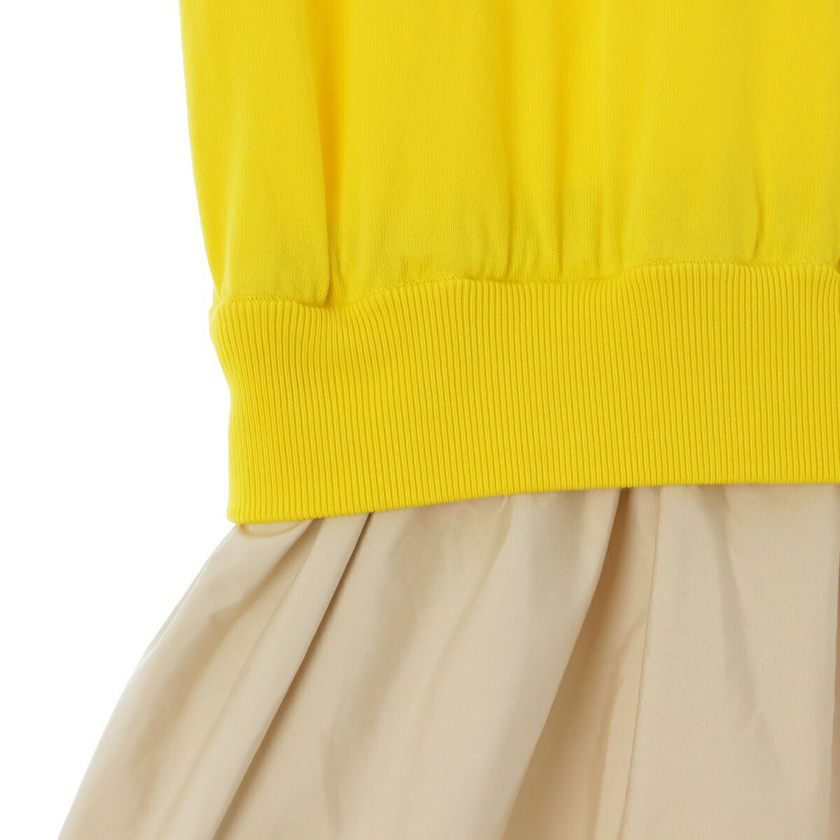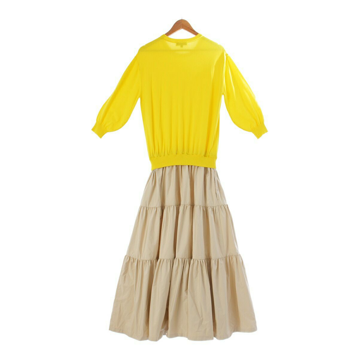 ドゥロワー 23SS 16Gxタフタ ワンピース ブラウジングワンピース ロング マキシ丈 九分袖 ニット切替 イエロー ベージュ エクリュ1【中古】【正規品保証】