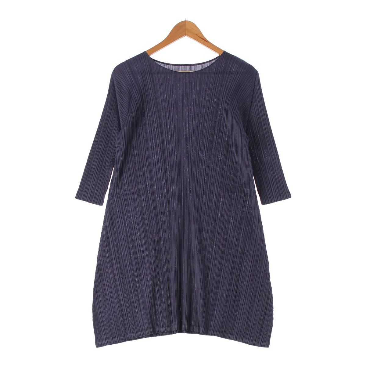 プリーツプリーズ イッセイミヤケ 17AW クルーネック プリーツ 七分袖 ワンピース PP73-JH185 ネイビー 2