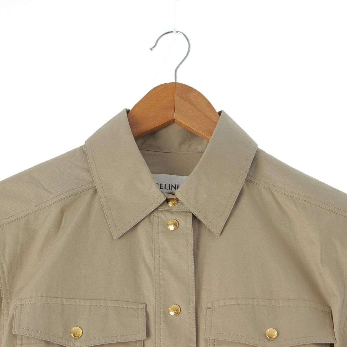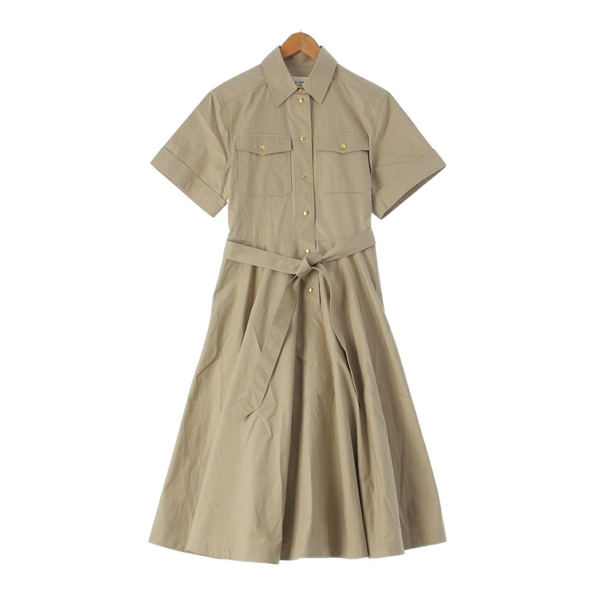 セリーヌ コットン トリオンフ ボタン シャツ ワンピース 2R32A2041.02BG ベージュ カーキ系 38