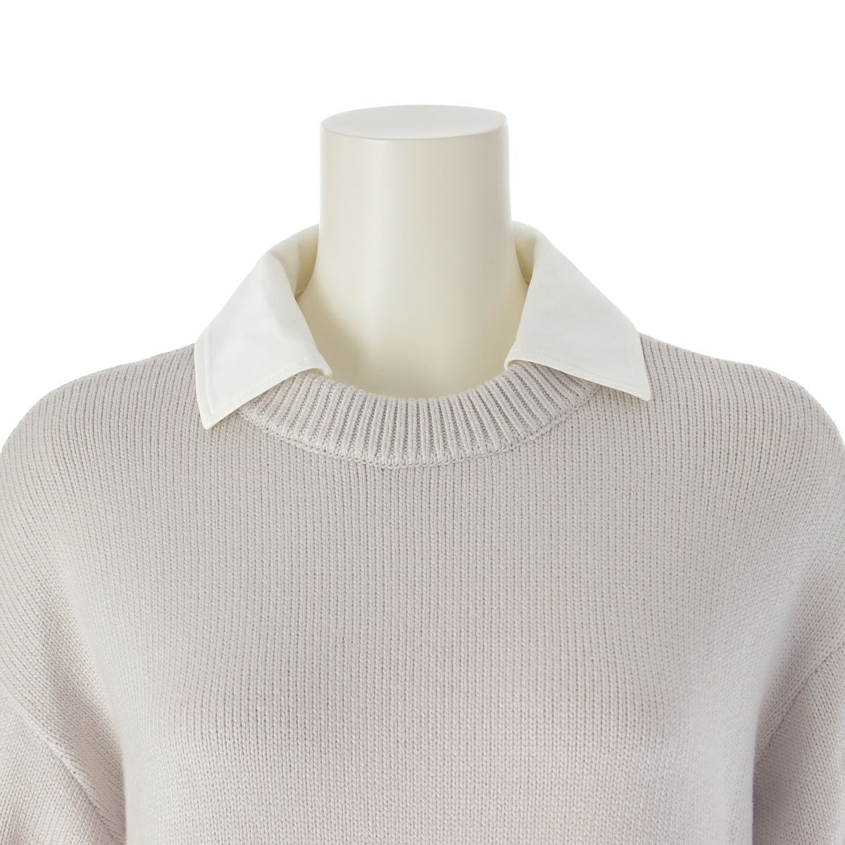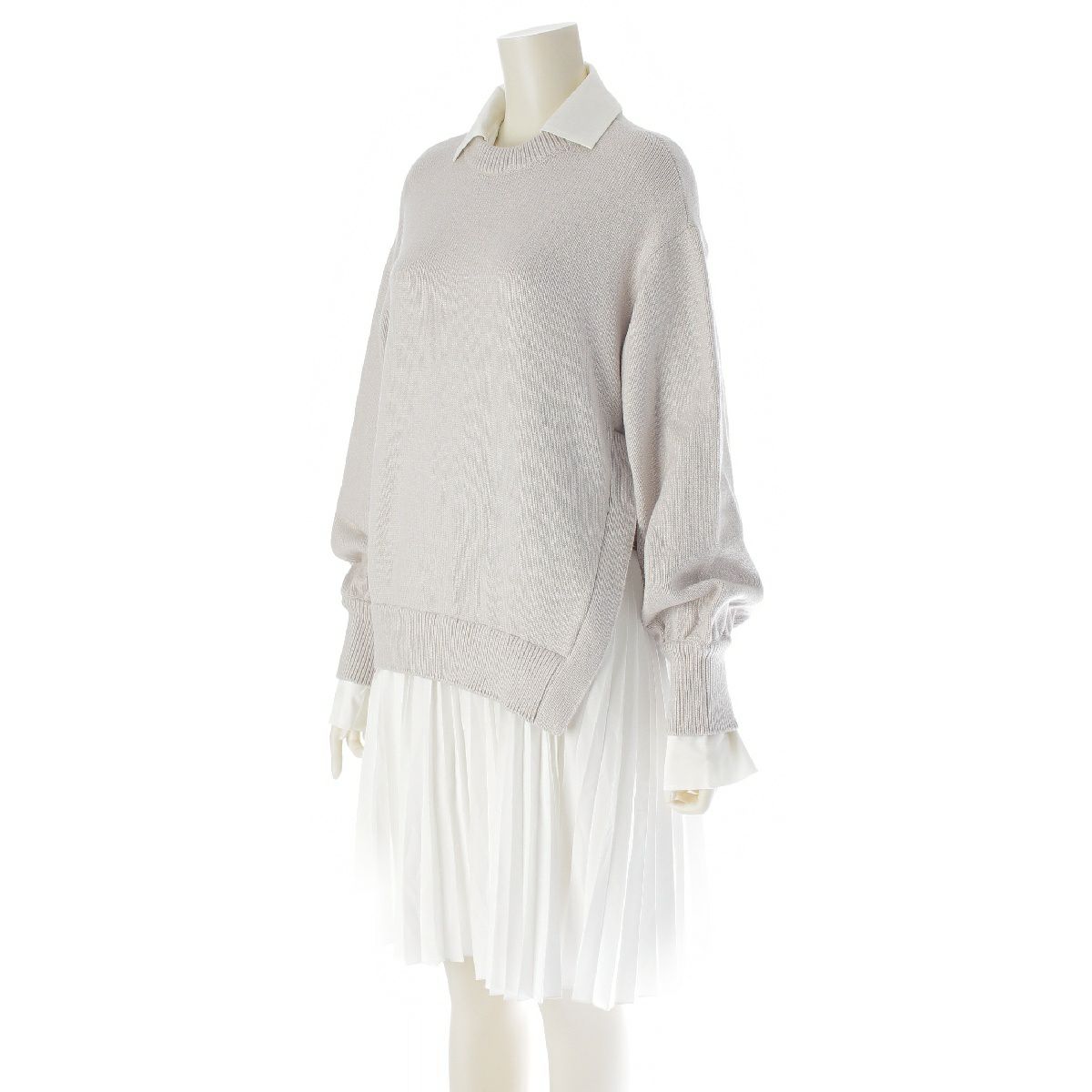 アディアム 22年 コットン ニット ドッキング プリーツ 長袖 シャツ ニット ワンピース ドレス 42519 グレー S