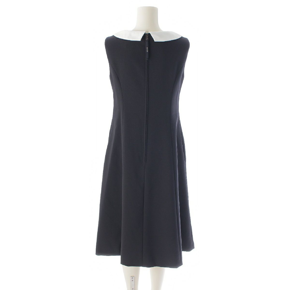 フォクシー 22年 ドレスイルーザ 白襟 ノースリーブ ワンピース 43092 ミッドナイトブルー ブラック 38