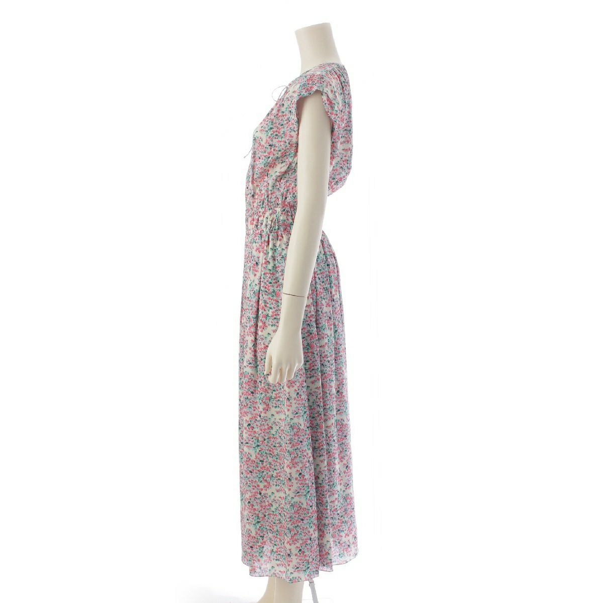 ドゥロワー シルク フラワープリント ウェストギャザー ノースリーブ ワンピース ドレス 6526-299-1287 マルチカラー 36
